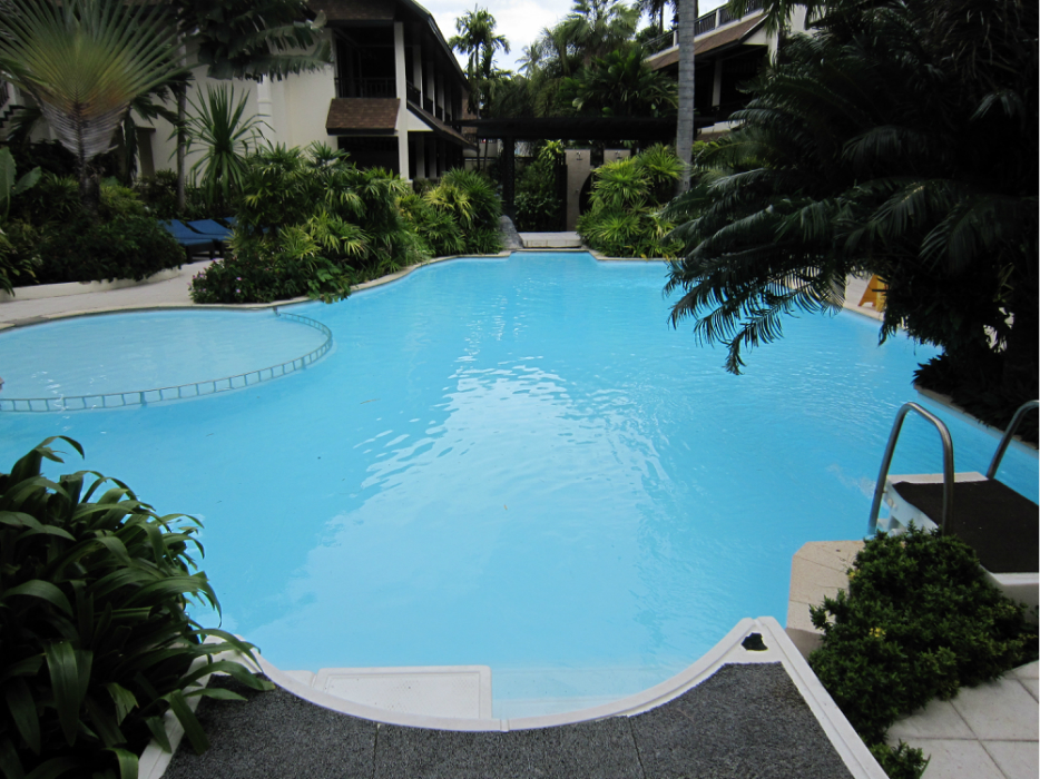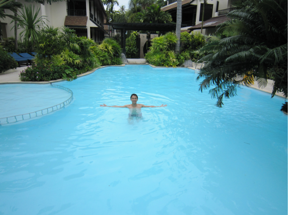 呵呵,来了真是不吃亏!很漂亮的泳池!而且现在一个旁人也木有!