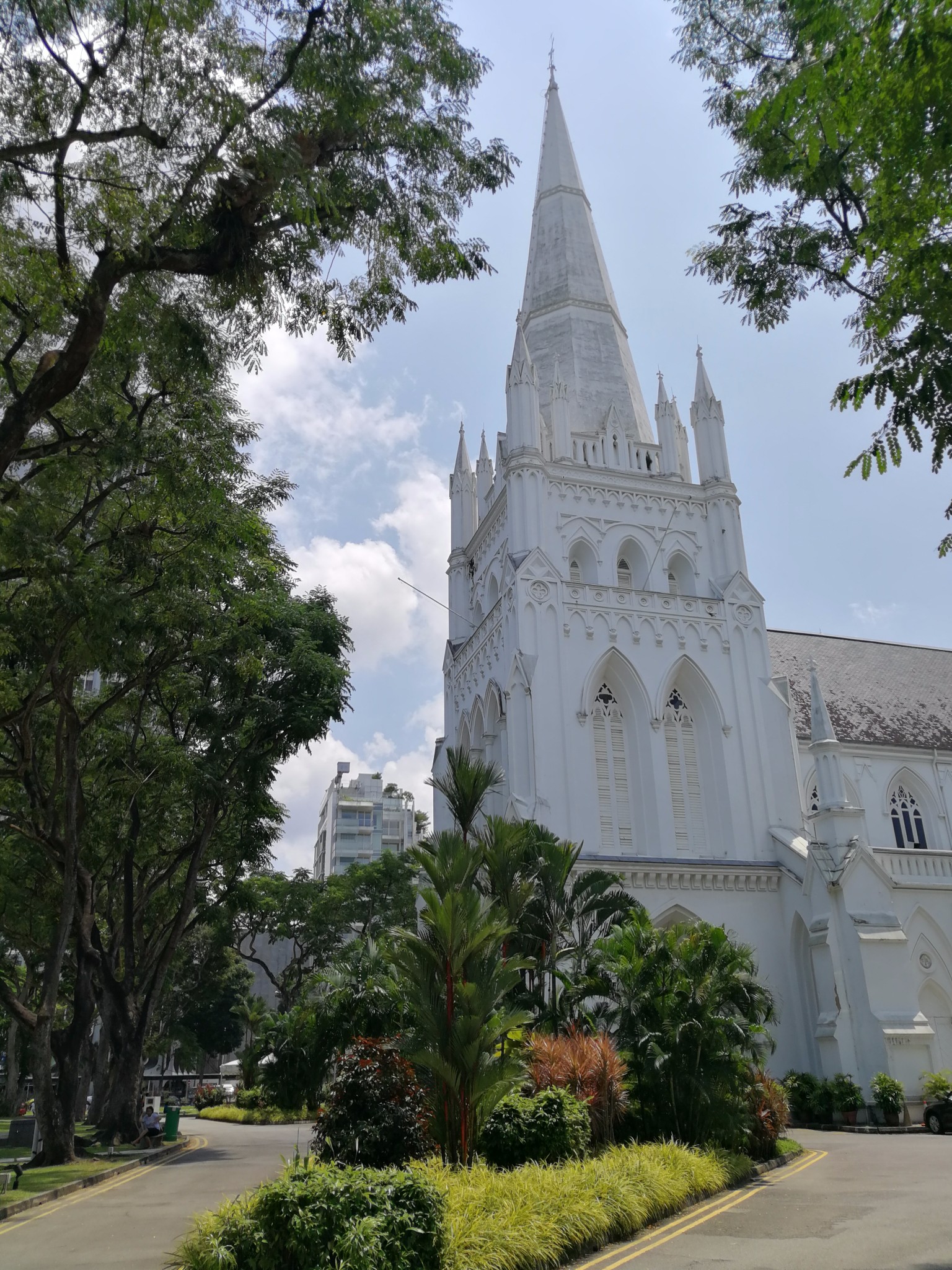 步行到不远处的圣安德烈大教堂,洁白无瑕的外观,内部绚丽的雕花玻璃,是早期英国哥特式建筑(新加坡地区曾是英国殖民地)。教堂内部气氛安静,心旷神怡。