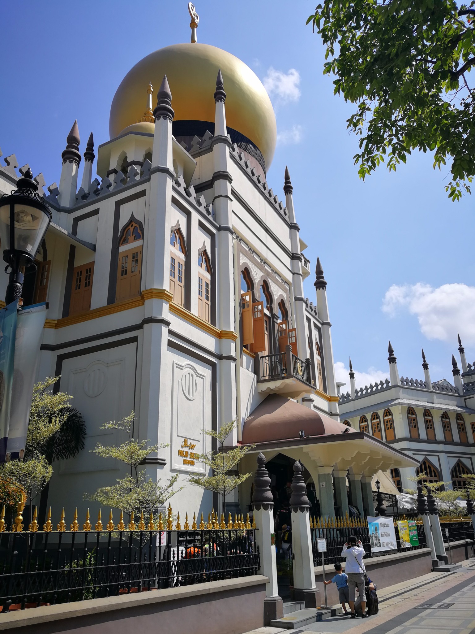 4月30日坐地铁在武吉士站下车,来到苏丹回教堂和哈芝巷。1824年建造的苏丹回教堂,是新加坡最大、最古老的伊斯兰寺院,远远就可以看到金色的圆顶,整体建筑庄严华丽。需要借长袍,脱鞋进入。