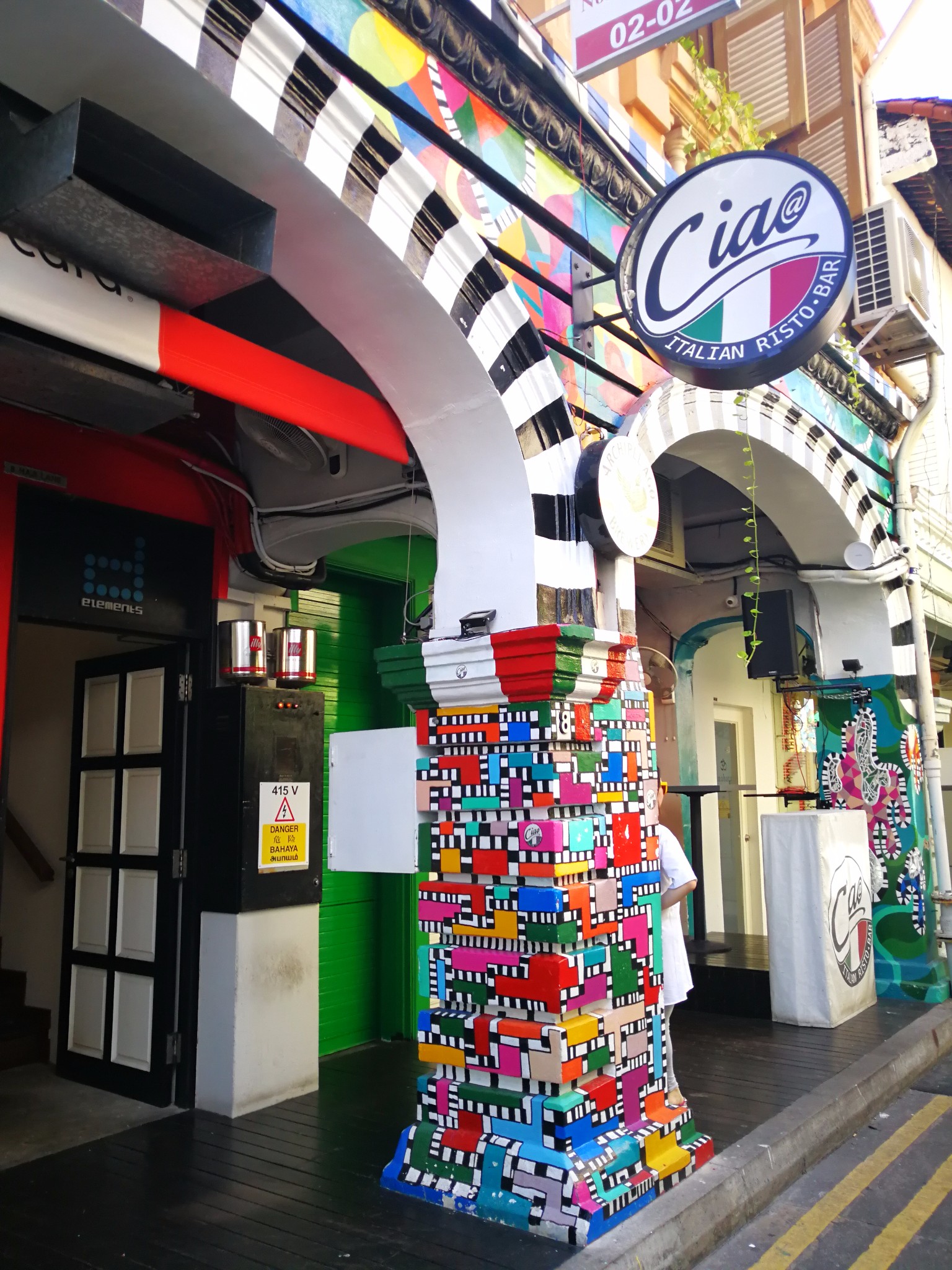 5月1日天空阴沉,正好到最繁荣的商业街--乌节路逛吃。新加坡人口中大约15%是印度人,朋友推荐到印度人聚居的小印度看看。我们只是在地铁小印度出口的艺术区拍了几张照片就离开了。与前二天在滨海湾地区的繁华和时尚相比,这里感觉至少落后了二十年以上。