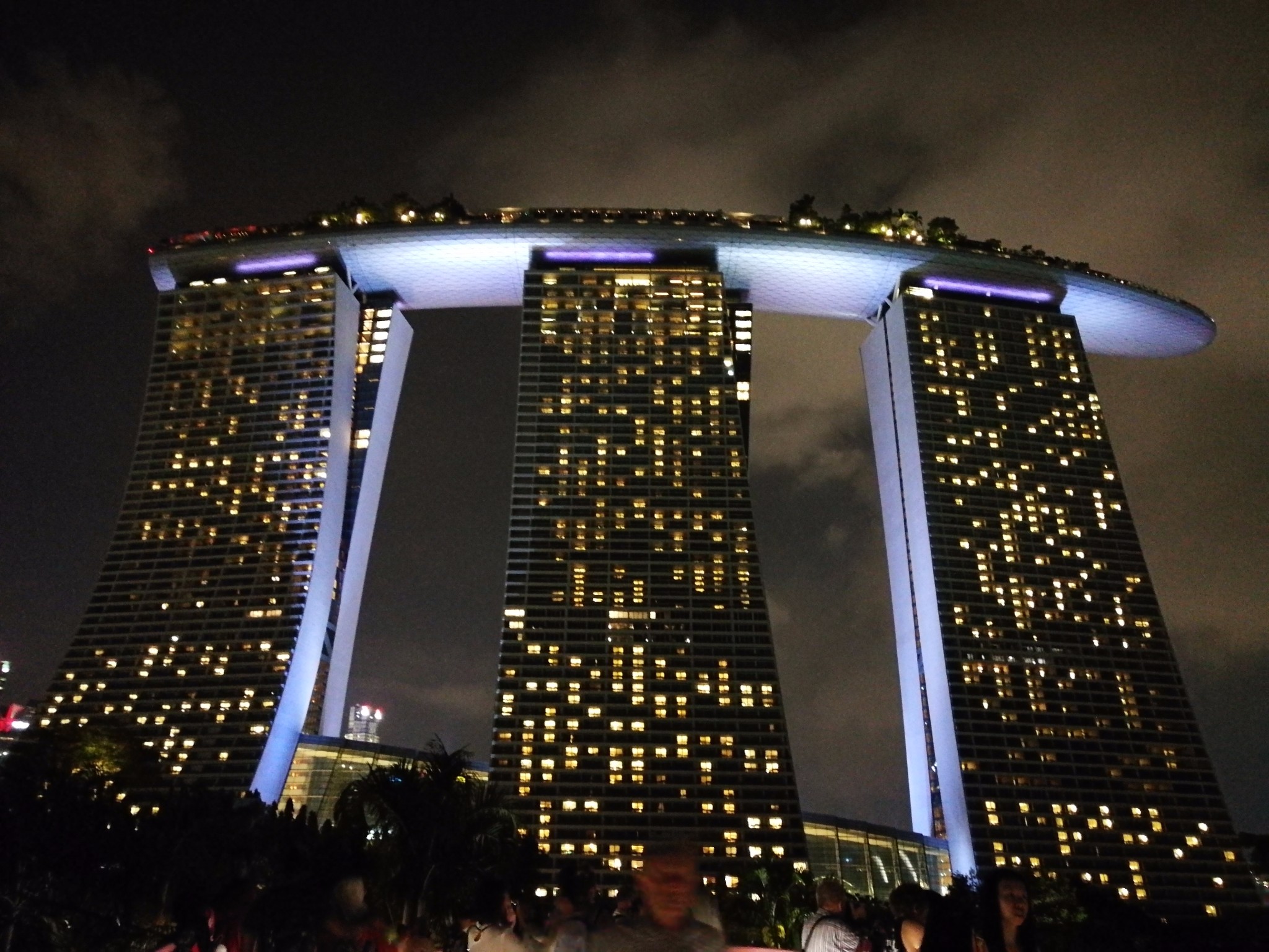 回到金沙的路上建有观景台,回望美丽的超级树,观看两岸的绝色夜景,超级树、摩天轮、金沙酒店比白天更有韵味,我觉得这是新加坡排名第一的景区。