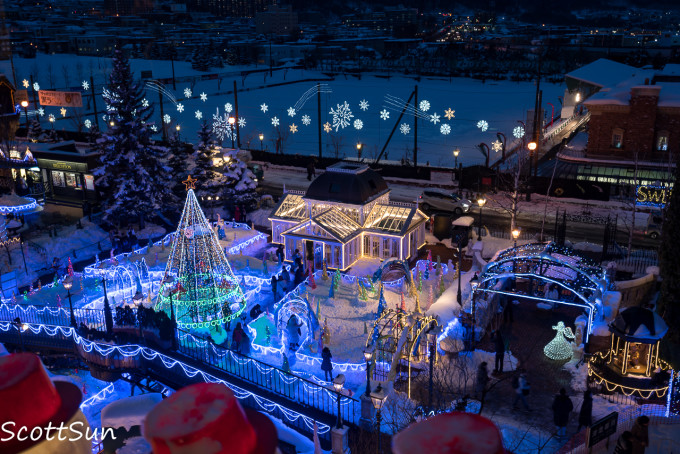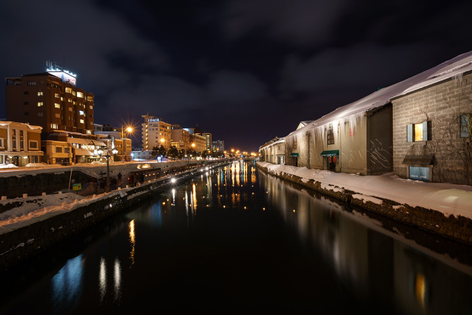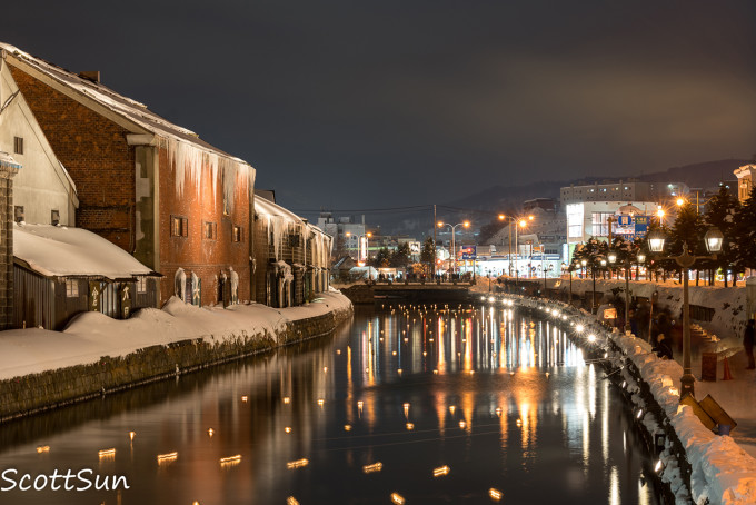 首先登场的是雪灯节时的小樽运河,河面上的灯盏如繁星点点