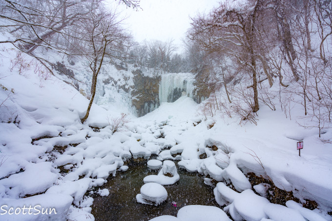 风雪中的冰瀑布,那日的雪最大,几乎模糊了视线