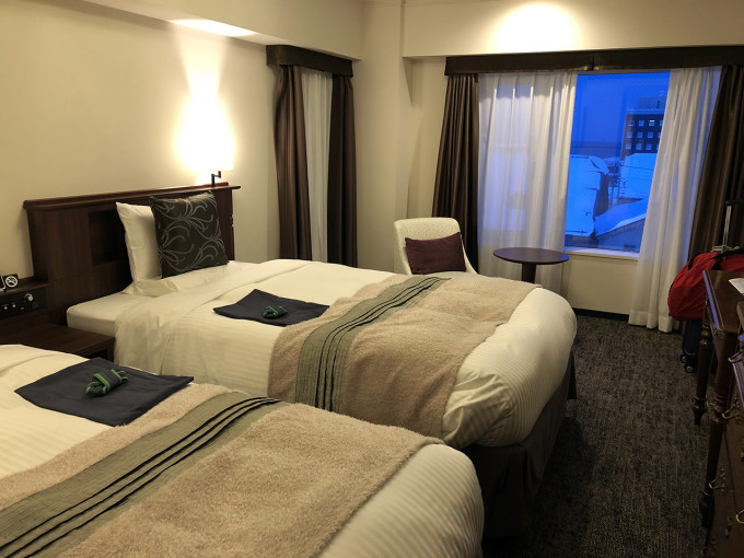 首晚为了去小樽看雪灯节,把酒店从札幌变更到了小樽。这家酒店位于运河边,从JR站步行过来约10分钟左右,给了运河景的房间,可以在房间内看运河上的点点雪灯。