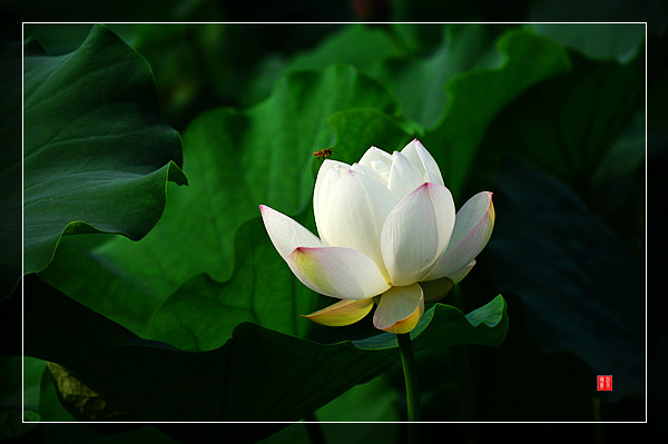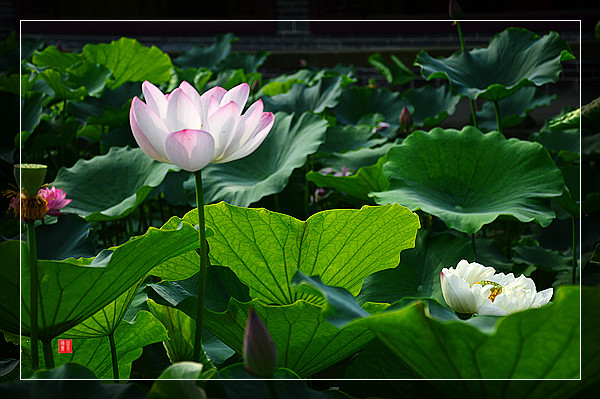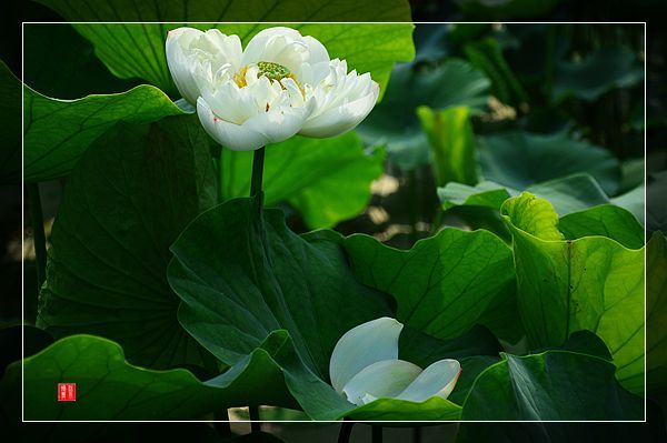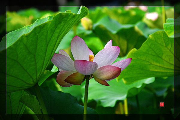 一朵芙蕖,开过尚盈盈。何处飞来双白鹭,如有意,