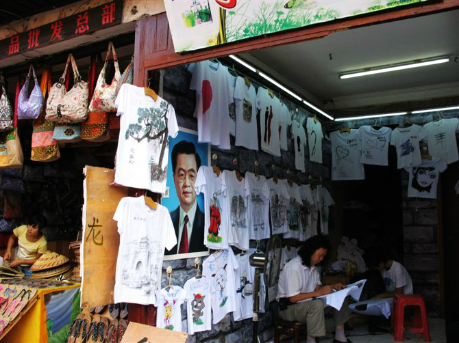 古城自然少不了卖衣服咯,这种手绘T恤我去年在阳朔西街也看到过,不过店子的数量没西街多。