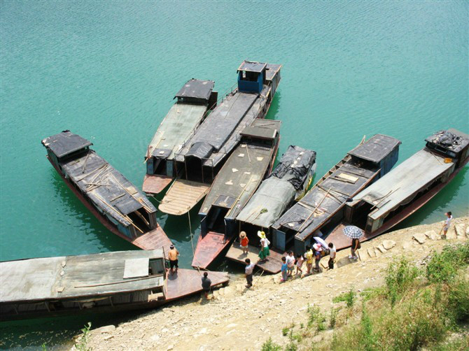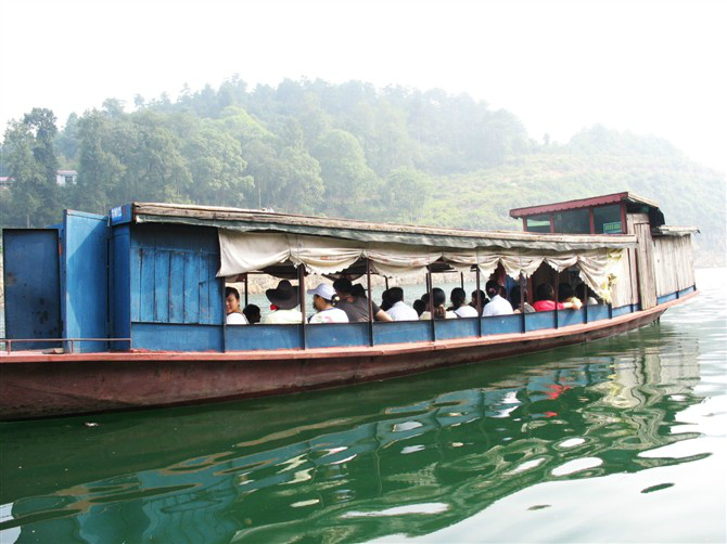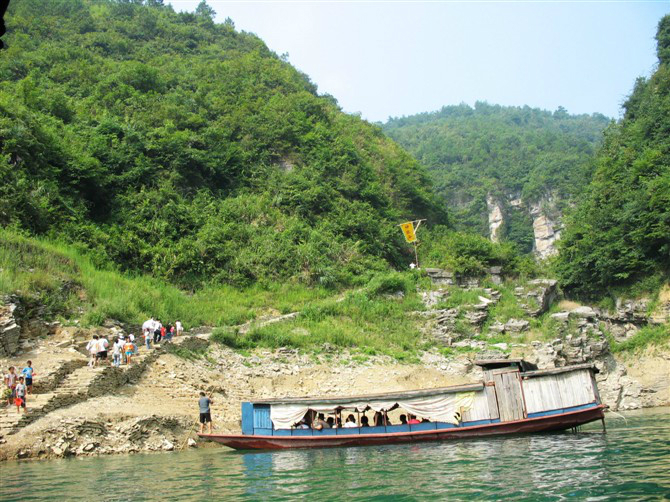 下车后,乘船前往神龙谷。船要行驶45分钟,大约有18里水路。看着沿岸的风景,心情很爽。