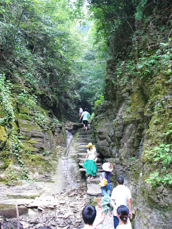 其他团队的游客选择了走一线天,这要走一个多小时才能到苗寨。