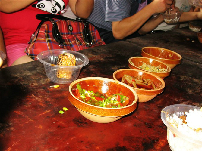 在山里自然不能奢求吃得有多好,苗家的饭菜很简单,菜都是用小碗装的,份量很少,饭是用柴火烧的,口感不太好,但要填饱肚子也不能太讲究,不求吃好,但求吃饱就行。