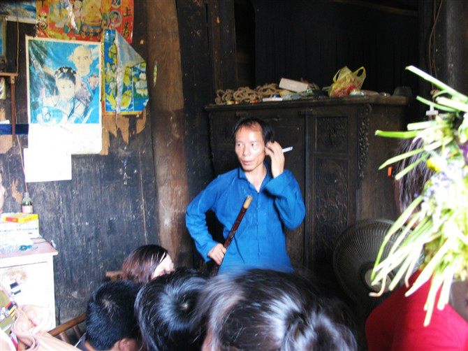 来到寨主家,听寨主介绍苗寨和他家的历史。寨主说这个苗寨叫岩洞寨,2001年才通电,现在有60几户人家,300多口人。他们这边的人都不会说汉语,后来这边要开发成旅游景区了,才学的说汉语。寨主的前几辈的爷爷都是代领族人打仗的,比如参加太平天国起义,参加内战等等,有个爷爷还随国民党部队去了台湾。在山下还有他们家的兵工厂,制作打仗的武器。