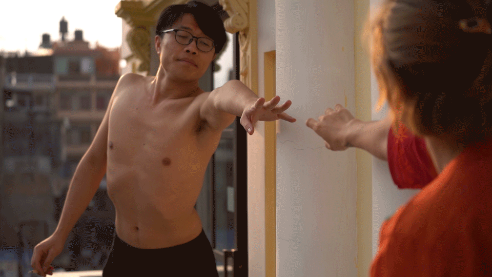 瞬间,我发现同行的杨圣蛋和小美在观景台并肩而坐,有说有笑,在这样冷调的清晨,他们好像发着耀眼的光芒,撒着异于常人的狗粮,于是我们拍摄风景的一行人,把相机纷纷转向了他们俩,在完全没有剧本的情况下,开启了各种分镜头的胡拍,开启了《尼泊尔爱情故事》的创作。本来一场拍摄闹剧的我们,顶着“最廉价剧组”的光环,开始变得认真,也让一群本来交集并不深的人,结下了“梁子”,而且是一辈子的。