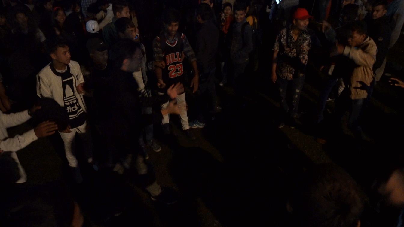 自称舞王的男1和尼泊尔中学生尬舞,一个娃一个空翻以后,舞池里再也不见男1的身影。