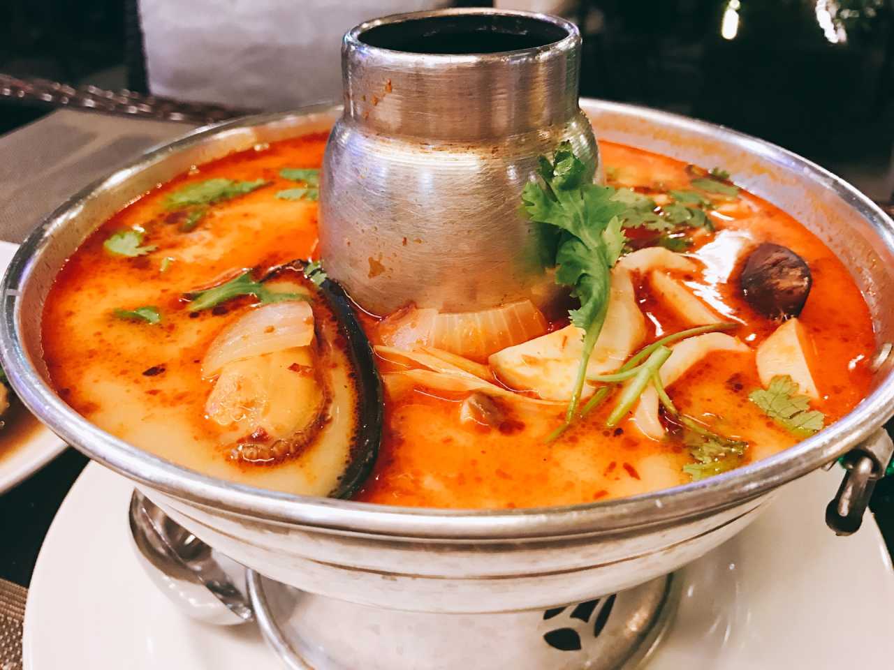 冬阴功海鲜火锅,应该是加了椰浆,喝起来一点也不辣,还有点甜,不过海鲜吃起来不新鲜了,看到他们的海鲜都是冰鲜的……
