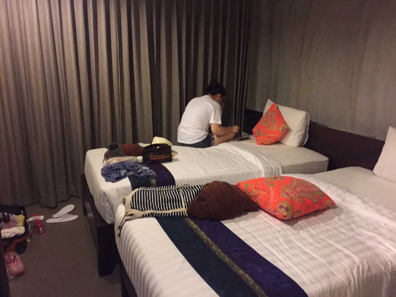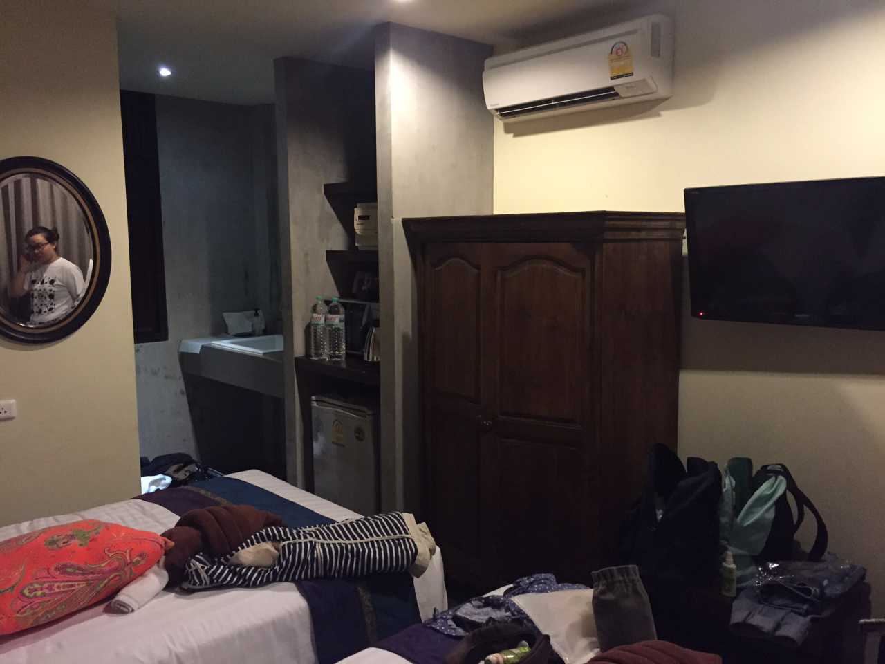这个房间实在太小了,而且旁边是个酒吧,有点吵,我们就跟前台商量换个安静点的房间,不过要加400Thb一晚,我们感觉也不是很贵,就换吧。事实证明换房间是明智的选择啊,空间大了很多还有独立阳台,值得了。