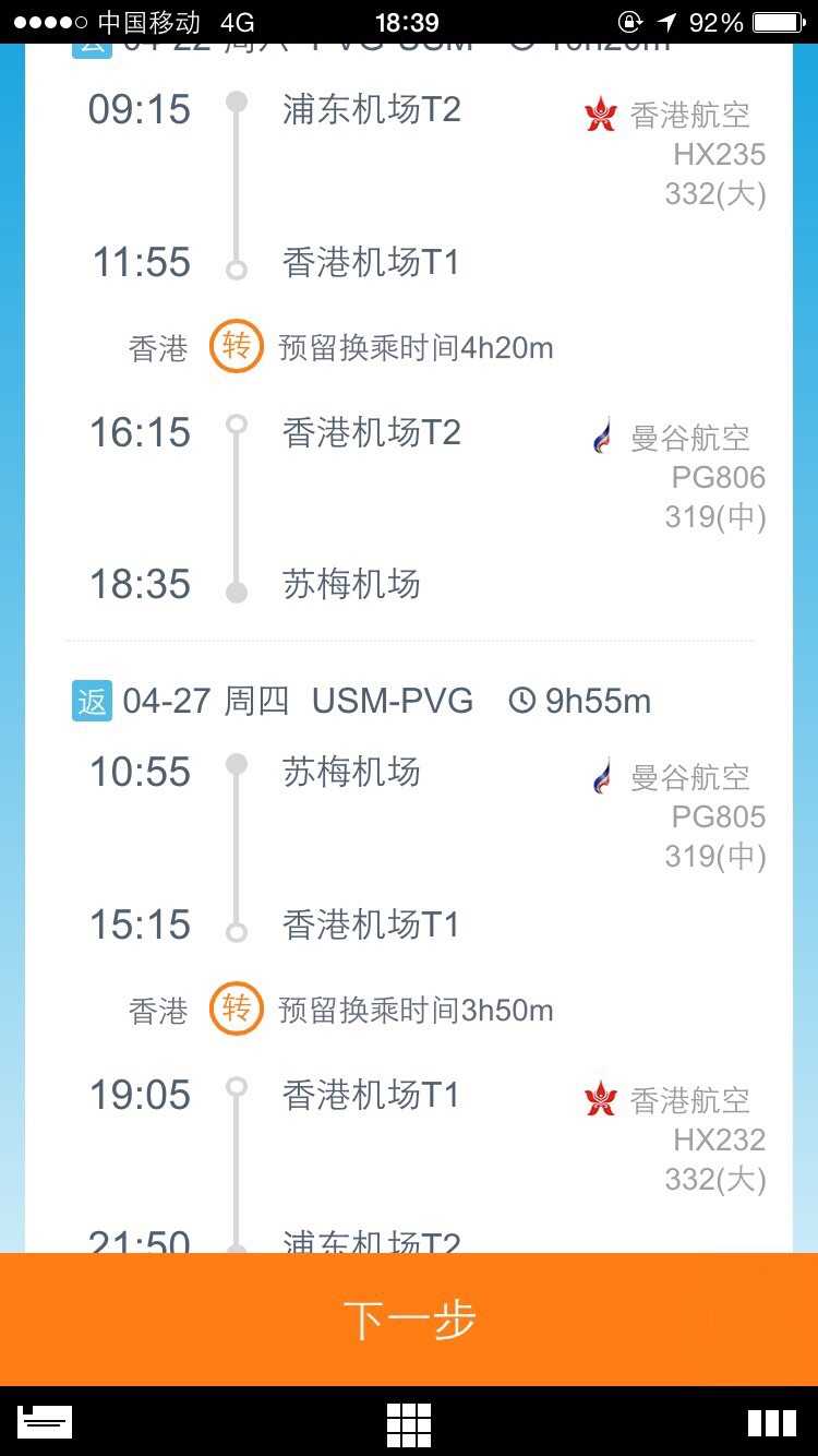 从上海没有直飞苏梅岛的航班,需要从香港,新加坡等城市中转,这样一来路途上花费的时间就会比较多,如果不想坐红眼航班的话,基本要用2天时间在路上。我们因为要逛免税店