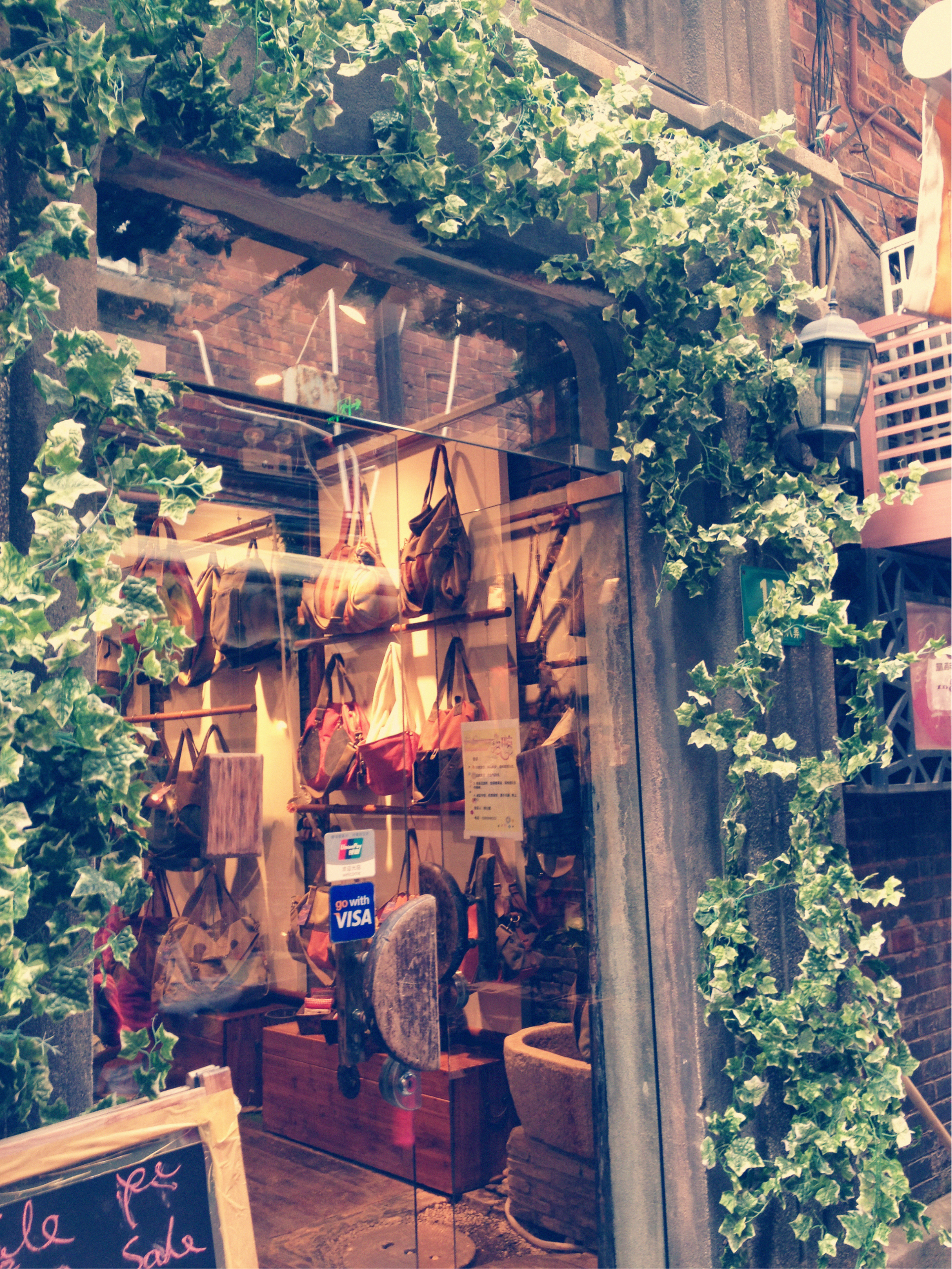 一楼是艺术品销售,二楼是咖啡店,秋天的衡山 路附近,都是落叶,下着雨,又是我最爱的天气和季节。