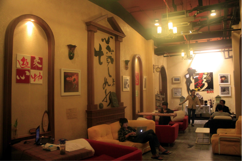 沙发区,好像真的有人晚上就睡在这里,或者通宵夜聊~