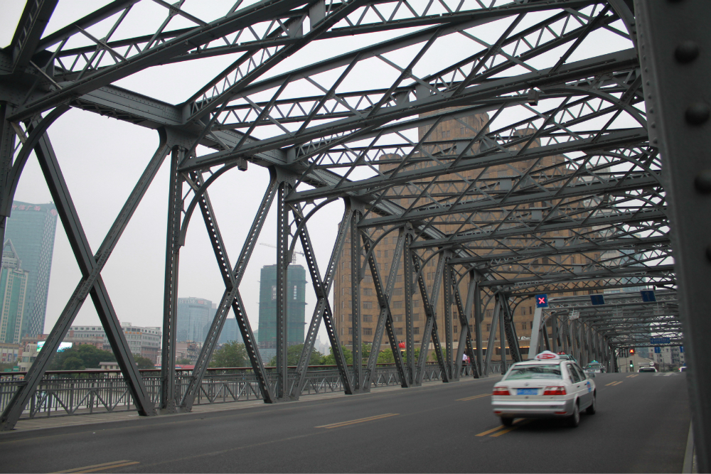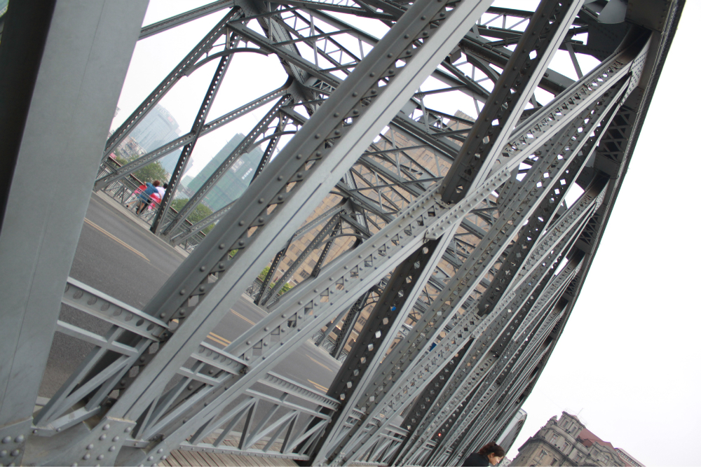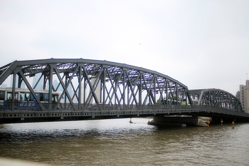 外滩旁边,电视剧《情深深雨濛濛》中,赵薇跳下去的那座桥,不过当时是在影视基地拍出来的,貌似不是在这座桥上。不过老外白渡桥,因为当年都是摆渡过江,而得名,非常漂亮!游人很多,钢铁气质露出沧桑感。