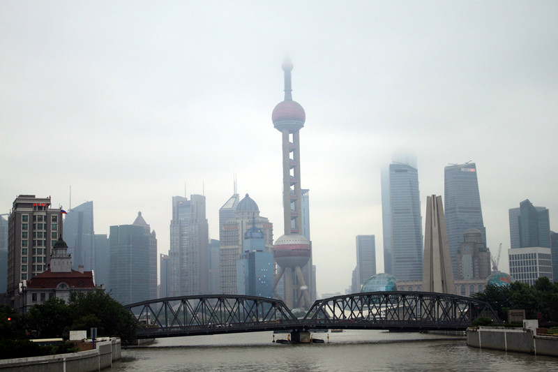 下过雨了,金贸环球都看不见了,对面陆家嘴的金融区,大厦林立,连个吃饭的都找不到……