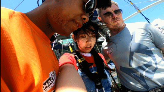 当自己准备的时候,看着工作人员放下甲板,一扣一扣地解开自己身上的锁扣,然后自己一步一步挪到甲板边缘 ,那时候就感觉这事真跟临死之前差不多 ,抛开身上所有的包袱,除了自己那身淘宝80块钱的衣服,什么也带不走。站在“生与死”的边缘,无所谓无底深渊,下去 ,也是···恩,还是我。(毕竟是要活着回来的人)