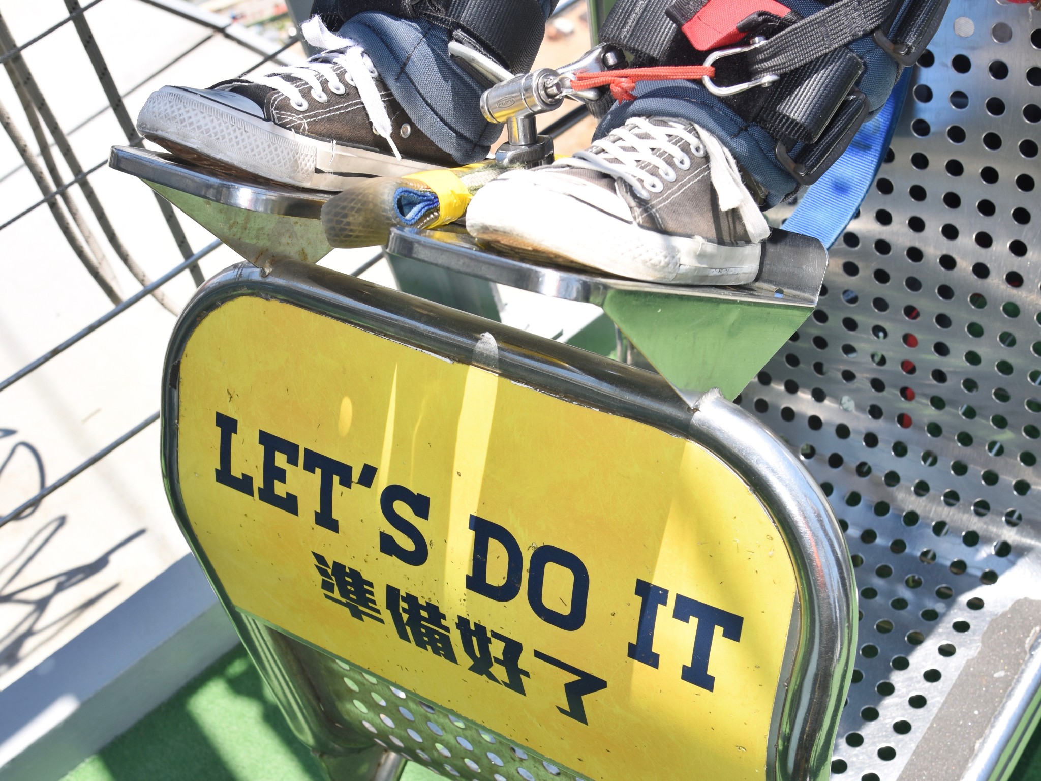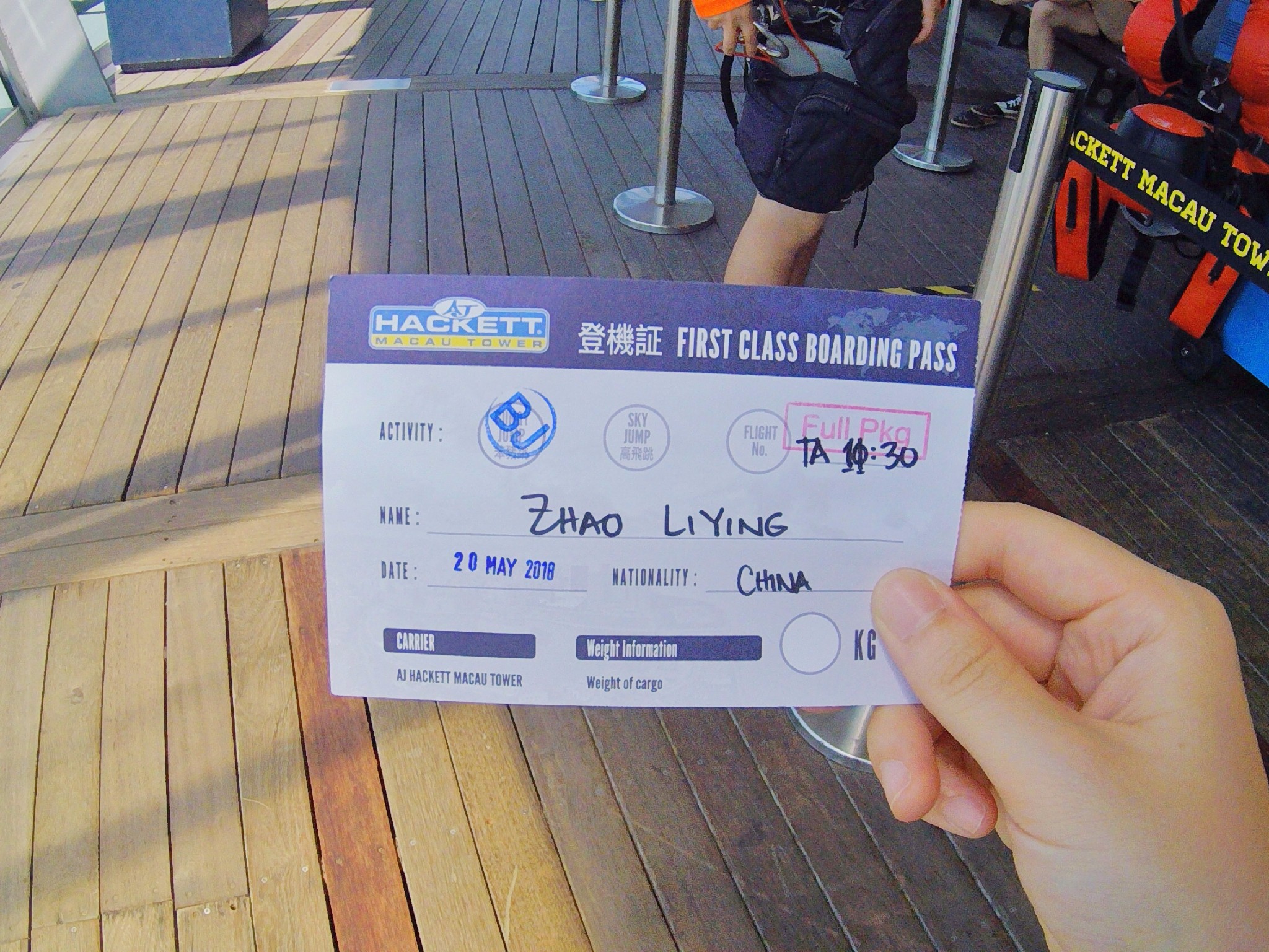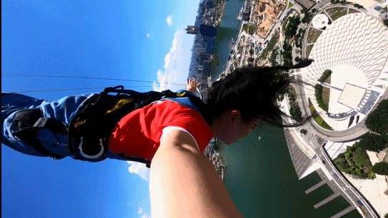 蹦极的地点在澳门塔的61层,蹦极有233米高。我对距离、高度这种事情向来没什么概念,后来知道一般蹦极也就30、40多米高的时候,虽然嘴角尽力保持微笑,但心里已经傲娇到小鹿撞晕了。