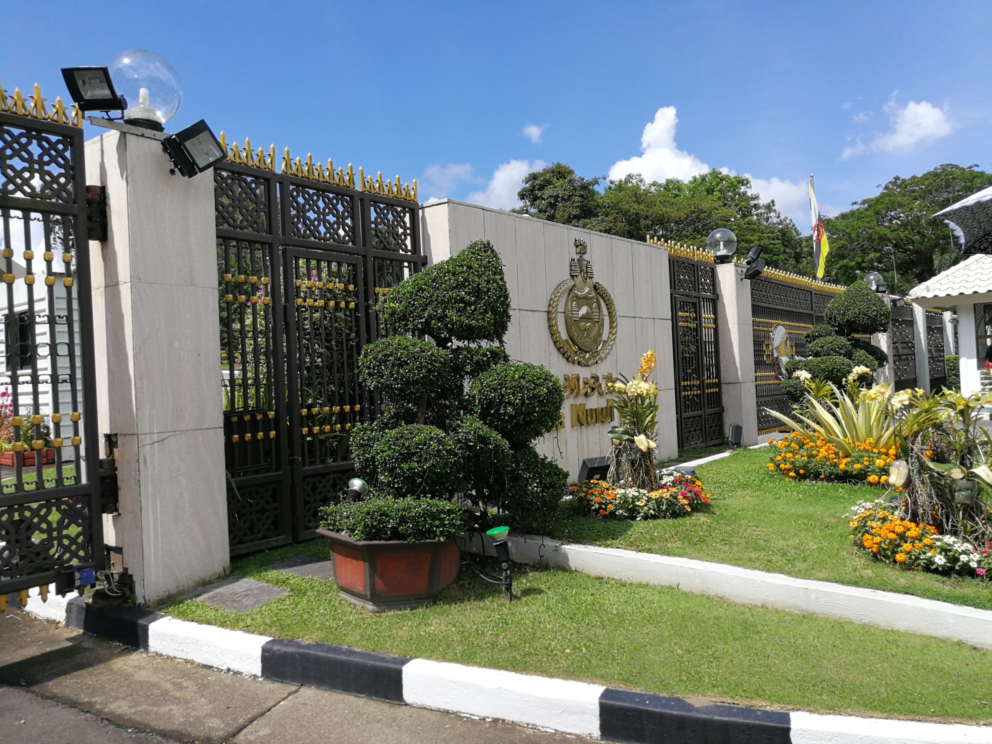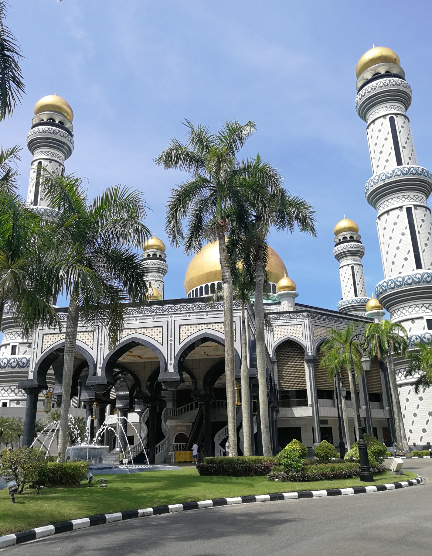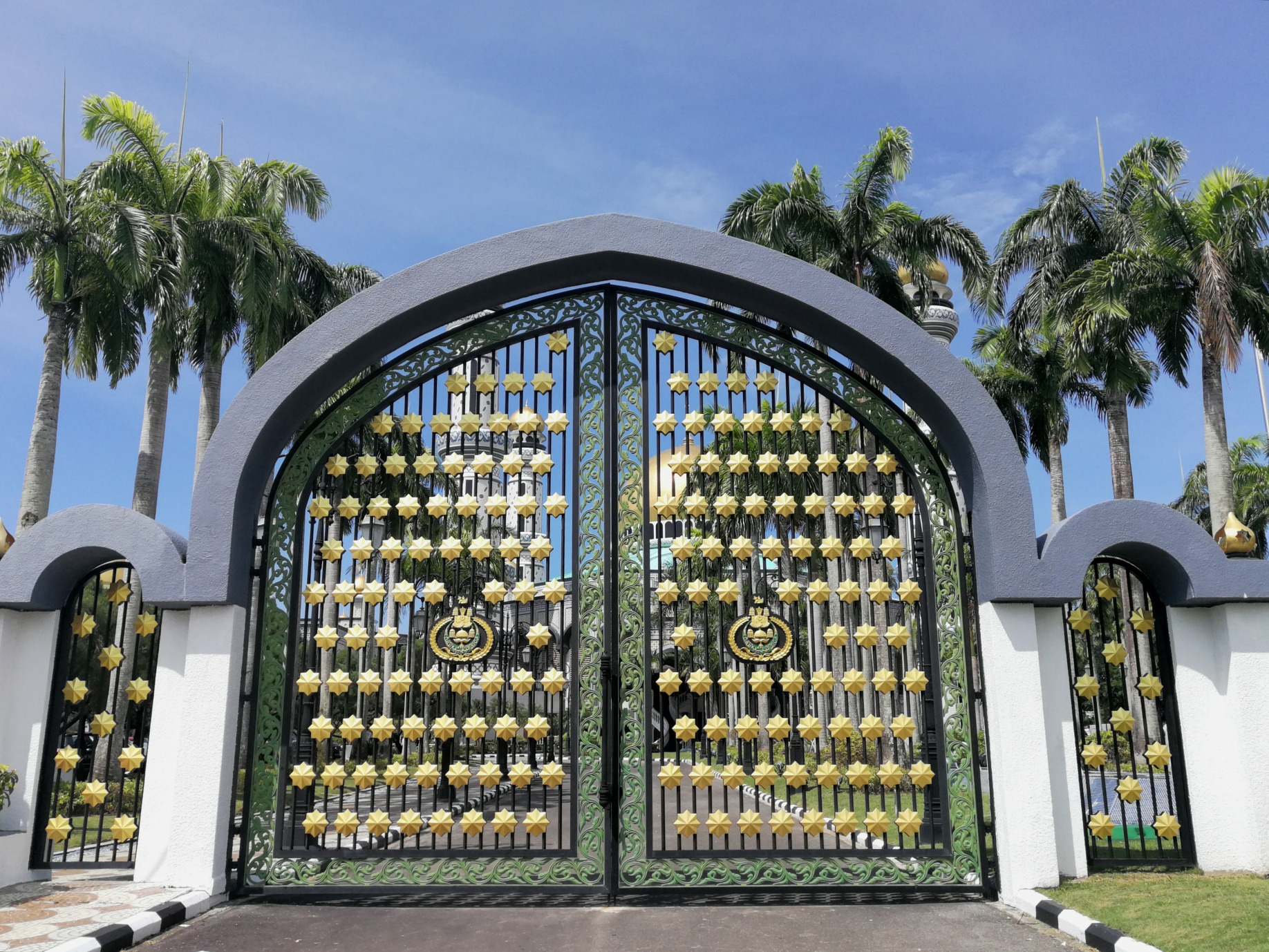 努洛伊曼皇宫是世界上仍在使用的最大、最现代化的宫殿,被称为“世纪性的宫殿”,是文莱苏丹的寝宫和办公之地。据说有1788个房间,总造价3.5亿美元。皇宫平时不对外开放,我们只能在外围逛逛,若想参观必须等到文莱国庆日(2月23日)或开斋节前三天(今年开斋节是6月15日),民众可以进去和国王握手,小朋友们还可以拿到红包。