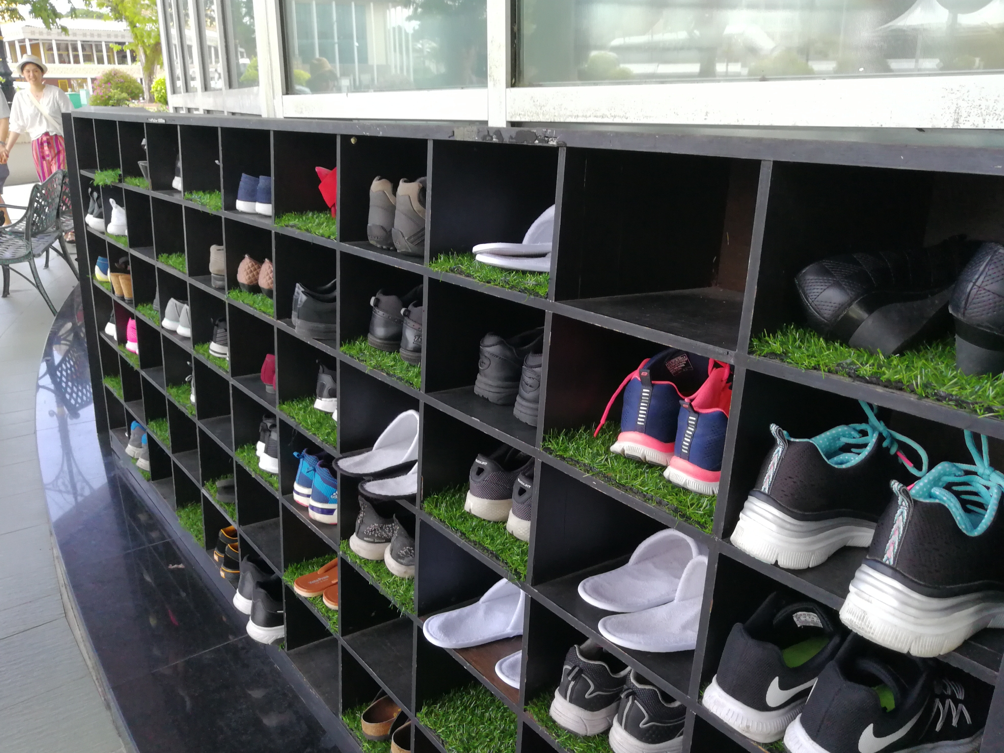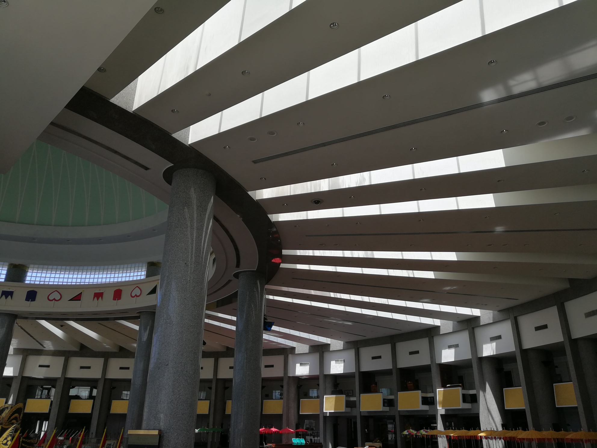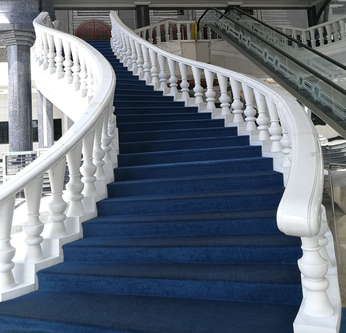 超级喜欢地毯的这个蓝色调,配以白色的扶手,似乎也让人有了朝拜的冲动!国王哈吉苏丹要是没有特别的事,也会来这里和百姓一起礼拜,旁边的自动扶梯就是为国王准备的。