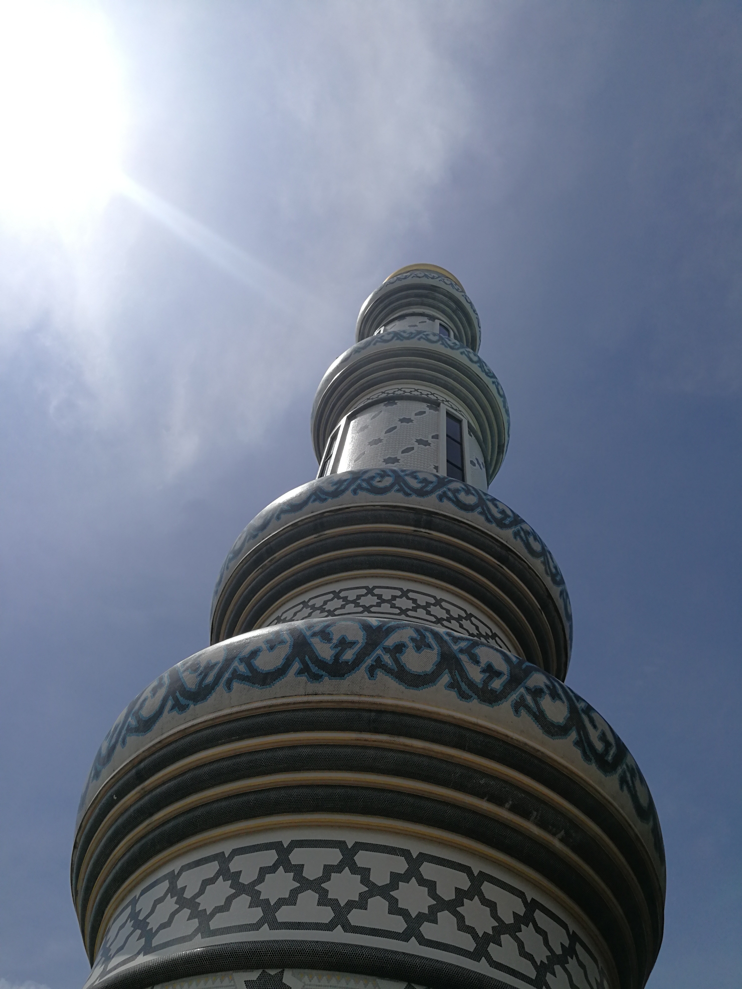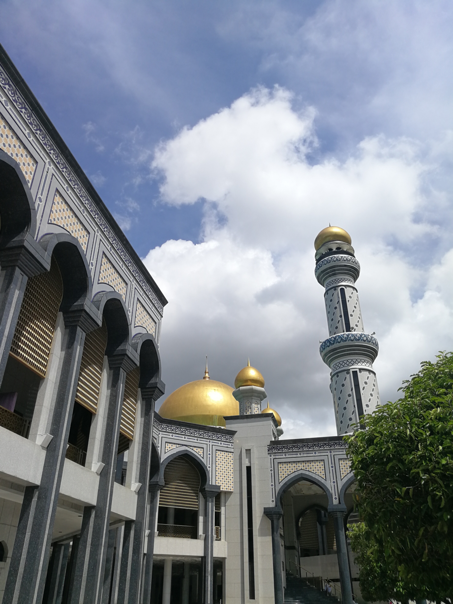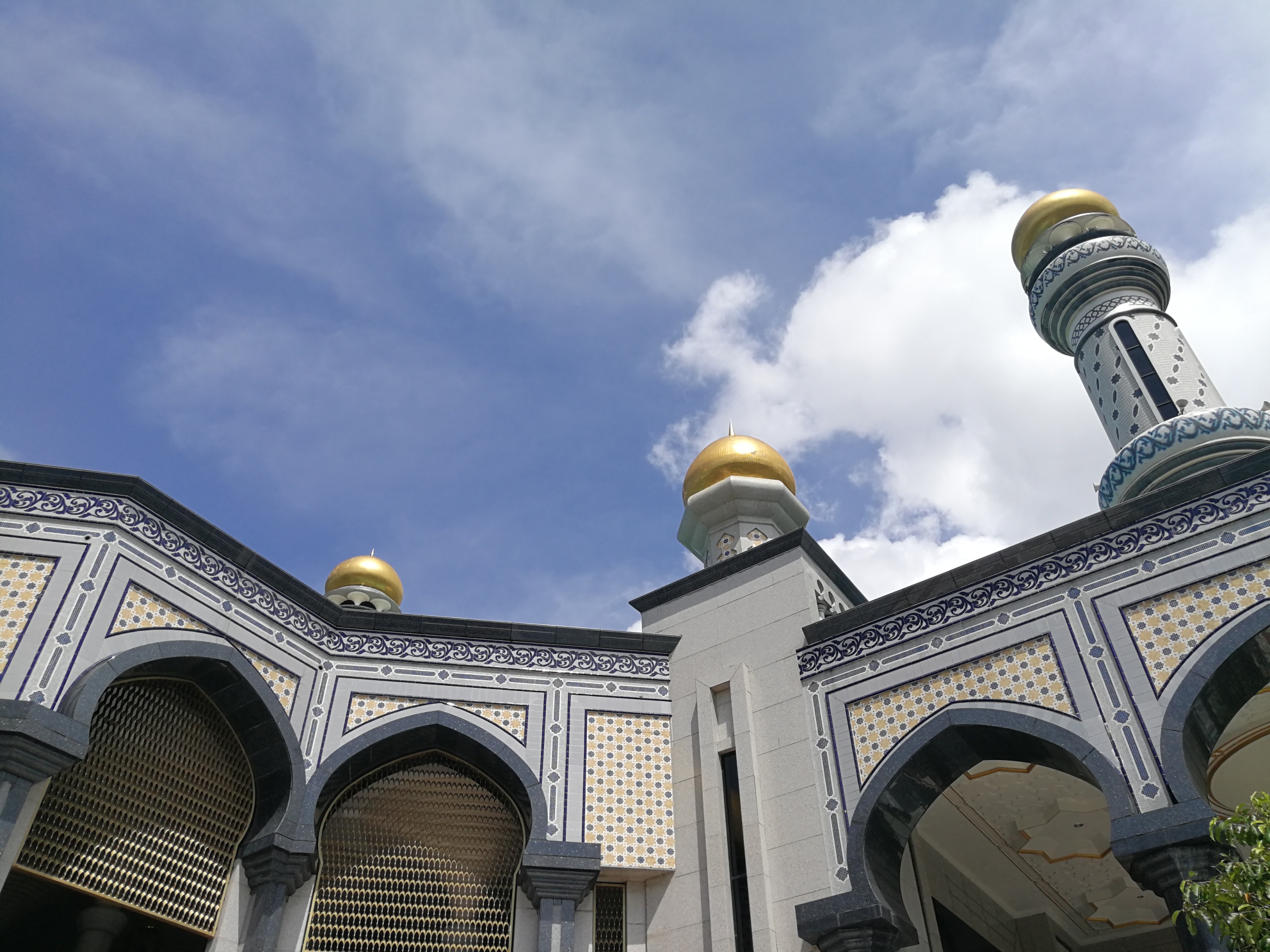相比奥玛清真寺,它融入了蓝色元素,如果说在阳光下熠熠生辉的金色圆顶彰显了文莱皇族的奢华,那么所融入的蓝色系似乎更体现了穆斯林的庄重。
