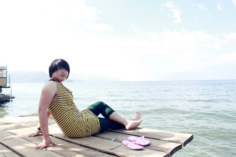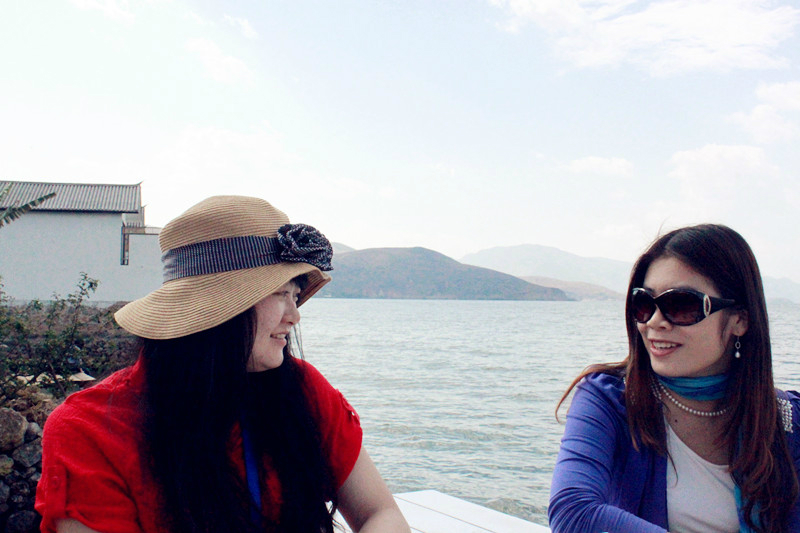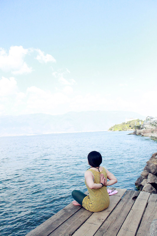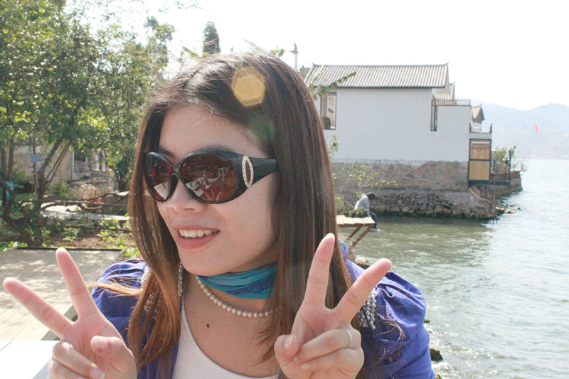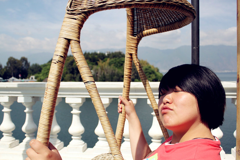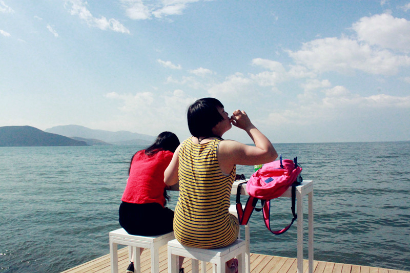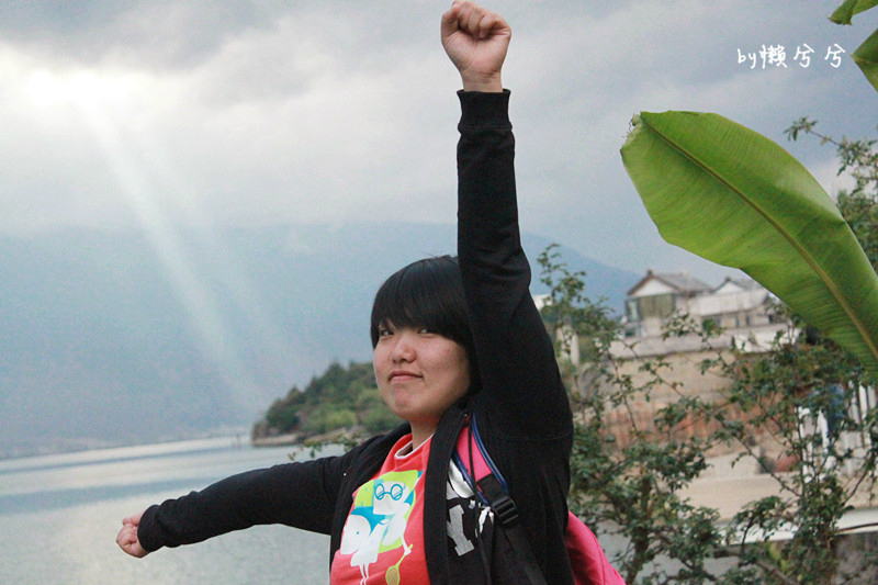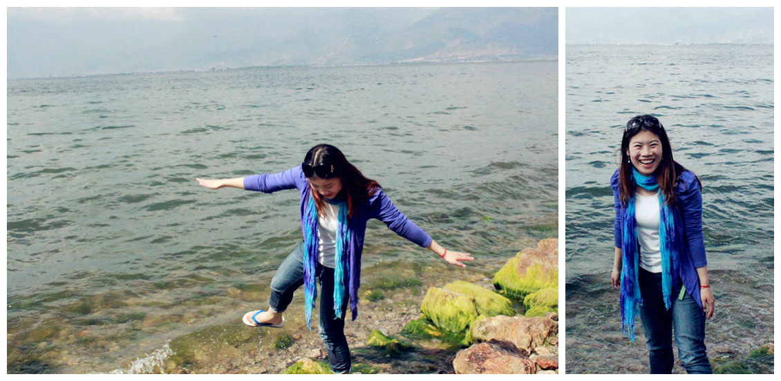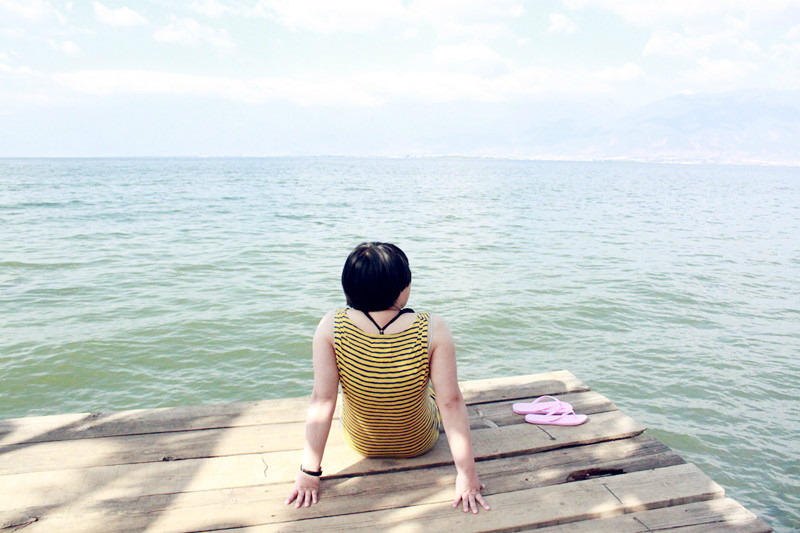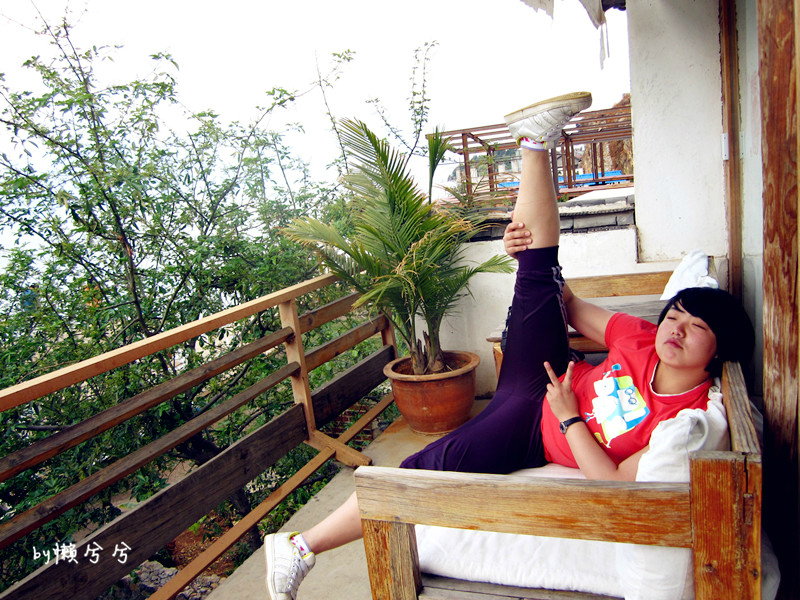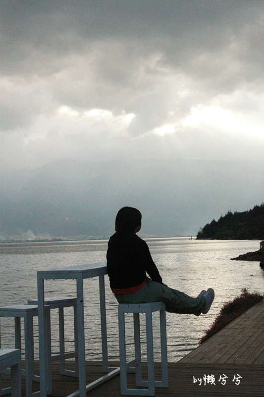 在双廊 的 day 1,day2,day3, 我们都懒懒的发呆,晒太阳,本来说好要骑车环洱海( 最多就骑到挖色),但是由于这面朝大海,春暖花开的日子实在是太舒服了,蛋蛋赖着不肯出去,我又不会骑车,只好一起发呆,好在这发呆的日子,也是过的极快的. 可怕的是 ,就晒了一下午的时间,蛋蛋的手臂就黑了一圈,这云南 的紫外线果然不是盖的,日子就在这发呆中过去了三天,每天抱着 ipad 听听歌,聊聊天,看看远处的苍山,连照片都懒的拍,晚上跟着 那些赖了很久的驴友出去看星星,压马路,双廊 的夜晚特别的黑,伸手不见五指,而海地 生活又在很偏僻的地方,以至于我们常常出去了就迷路了,有经验的驴友告诉我们逃玉几岛的票,于是我们在一个伸手不见五指的夜晚 去了玉几岛, 晚上的小岛上真的黑漆漆的,什么也看不见,我们拿着手电筒慢慢的摸着走,只听见那海风呼呼的吹,又冷又冻,好不容易找到一个路牌,显示杨丽萍的青庐,太阳宫就在前方,我们高兴大胆地往前走,结果左拐右拐的,竟然像是走到了岛的尽头一般,前方貌似没有路了,波光粼粼的前面,应该是海水反光,如果再往前走就要掉到洱海里了,此时的岛上静悄悄,就剩下我们三个,透过电筒微弱的光互相鼓舞着,就在这时,不知什么东西“啪嗒”一声打在我肩膀上, 像是鸟屎,又好像不是,像是什么肉肉的虫之类的,又好像不是,我大叫一声 啊,把她们两吓了个半死,然后就只看见我们三落荒而逃的背影....