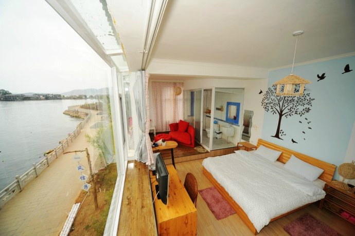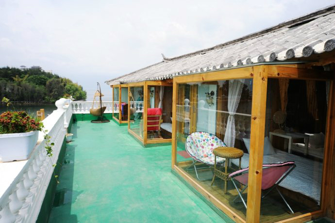 http://blog.sina.com.cn/hyacinthinn 这家其实靠近玉几岛,因为我们在海地 的房间续不到,而我们又想在双廊 多待几天,于是乎后面的几天我们基本上是看见客栈就去看房,彻底的把双廊 的客栈逛了个遍。