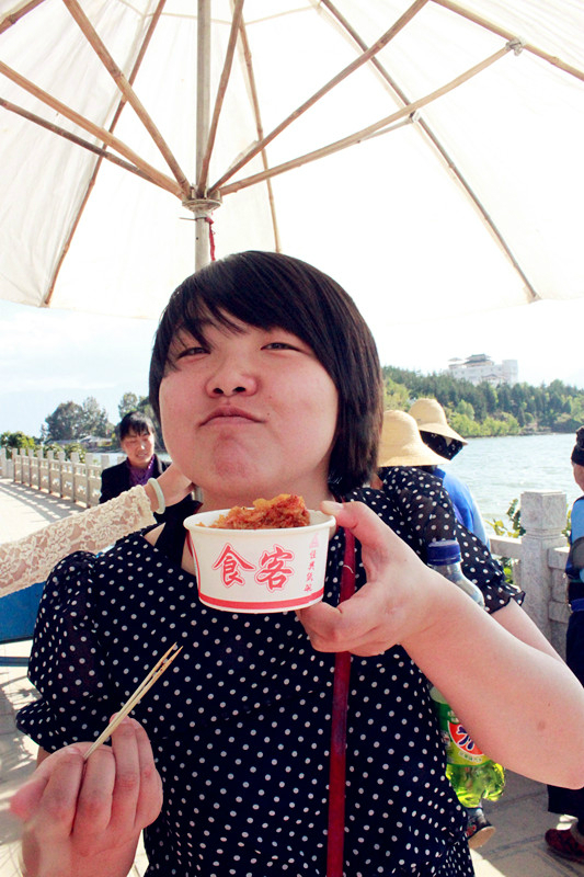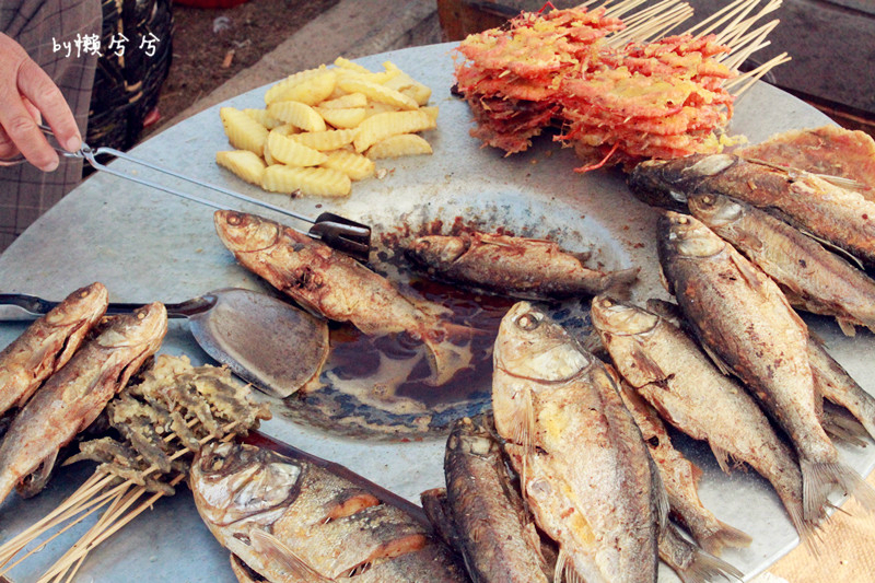 路上有 买小吃的白族阿婆,就是一些小虾小鱼,然后用蛋糊糊炸一炸,那么一点油,竟然能炸出金黄的效果,果然有考究,可惜我还在感冒,喉咙巨疼,不能吃这些小零食,只能看蛋蛋在我旁边得瑟的买了好几串,一边吃,还一边说 好吃好吃,