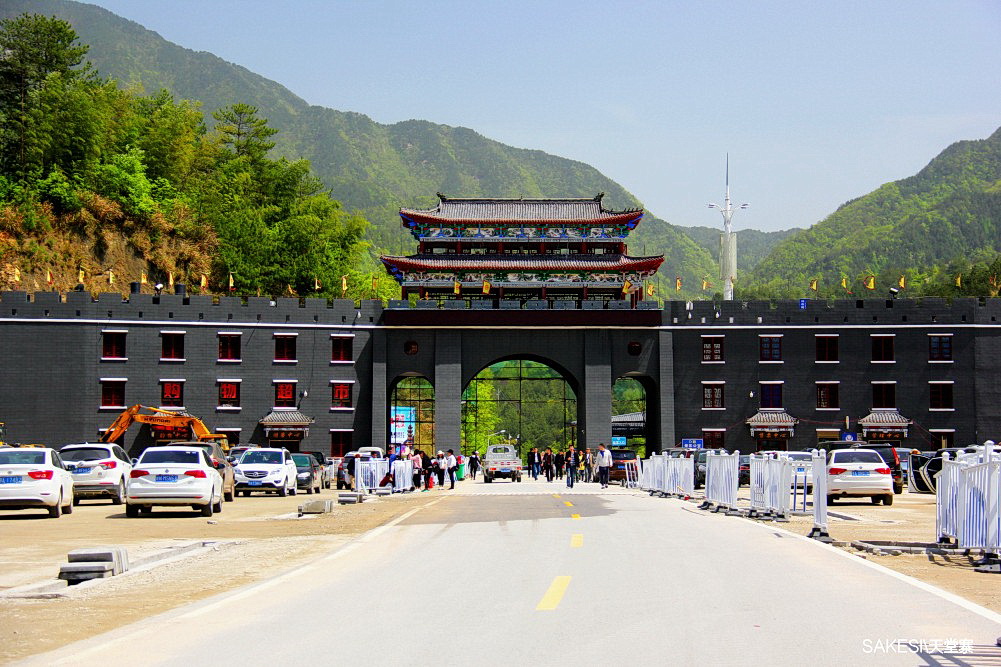 车开到到一个大牌坊门前,这有大片的停车场,购票处就在这。