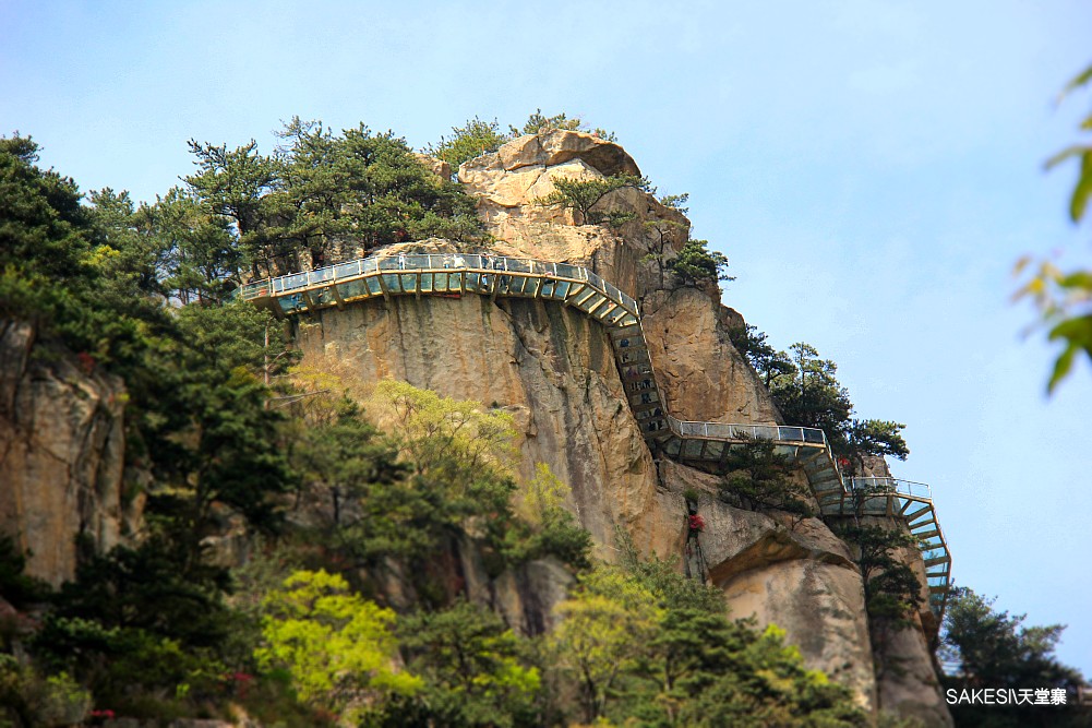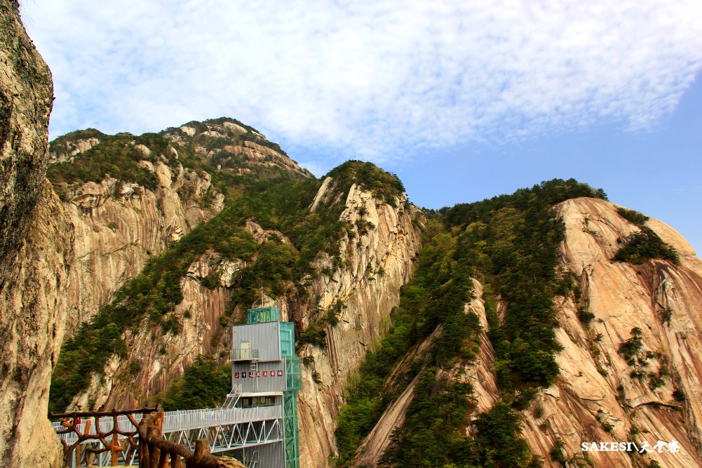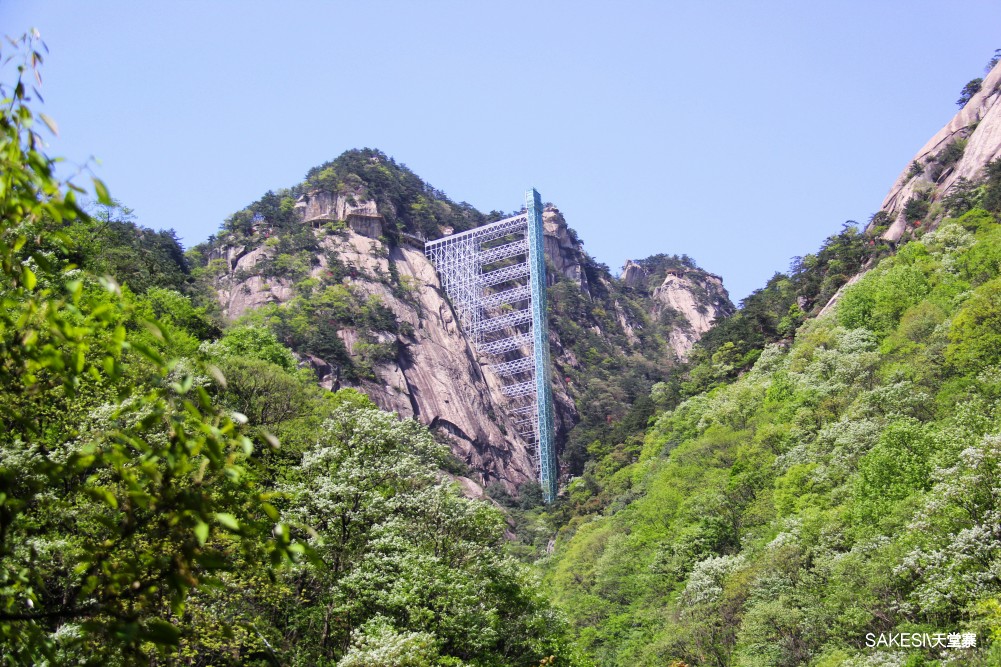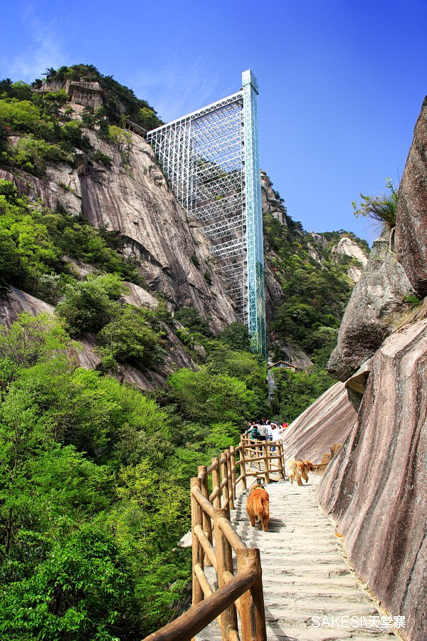 想当年在张家界的时候也有高空观光电梯但那次没坐,这回想不坐也不行,这没上山步行的登山道。