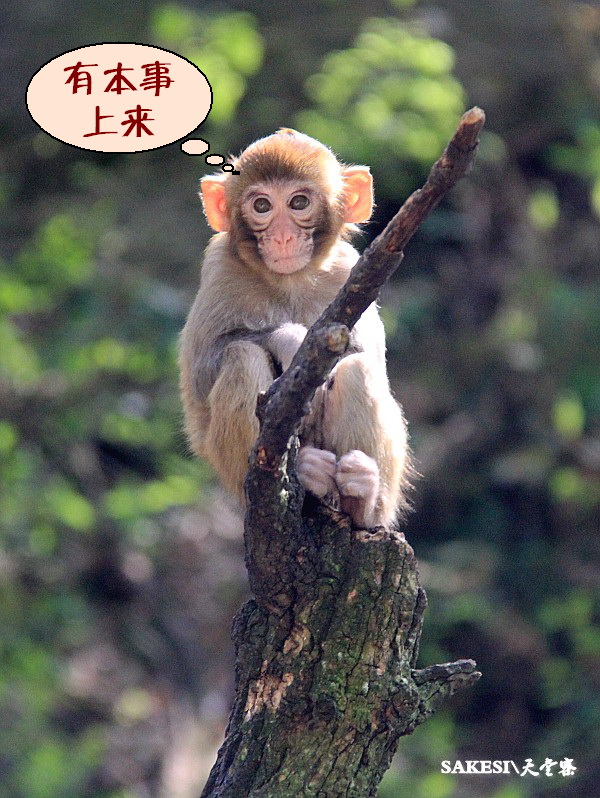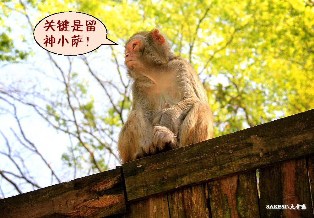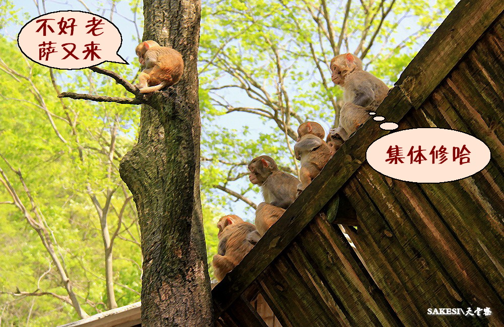可是刚进景区不久,遇到猴群挡道,我想这下完蛋了,要惹麻烦,因为萨克斯最喜欢抓猴子玩***