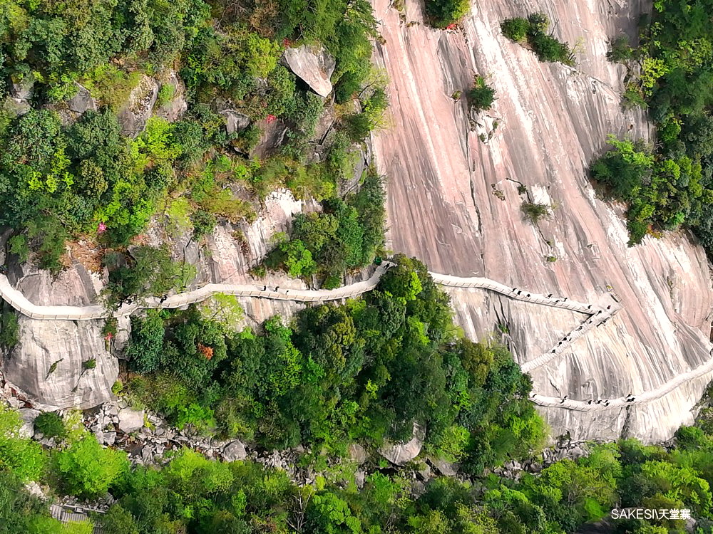 天堂寨所处的大别山,华东最后一片原始森林,是中国南北水系的分水岭,山北水往北流注入淮河,山南水往南流注入长江,在天堂寨峰顶北可望中原,南可眺荆楚,巍巍群山尽收眼底。海拔1729米。