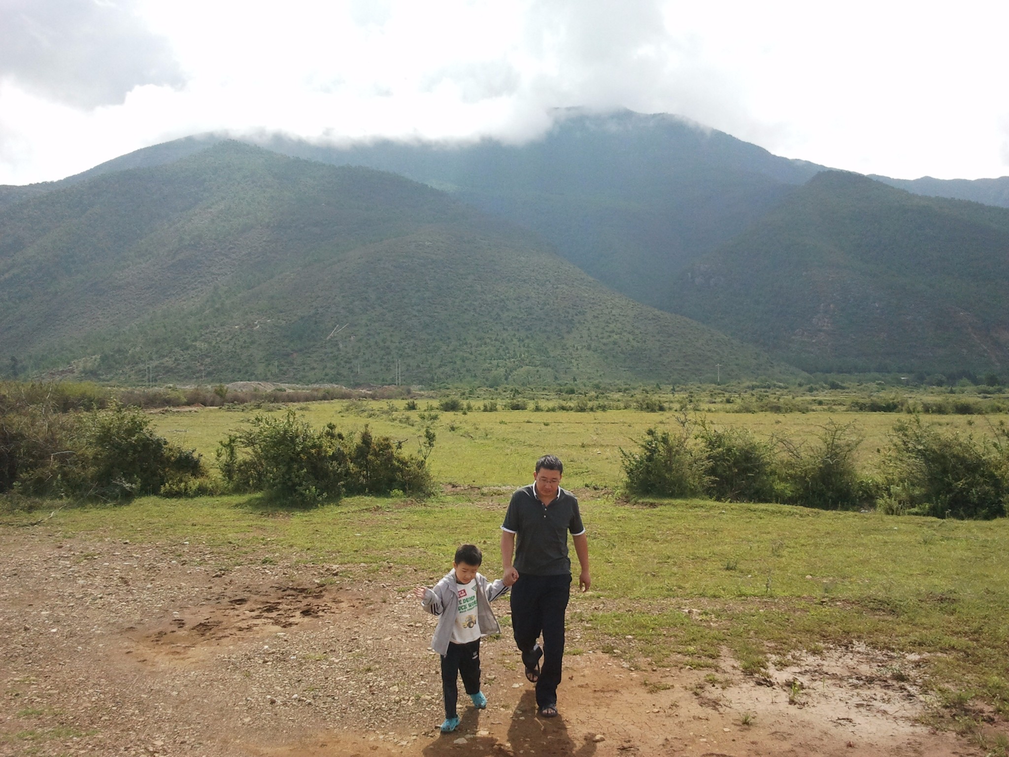 云南的山水之美,连路边都有很多美景,走在我旁边的就是资深旅行者老爸了。