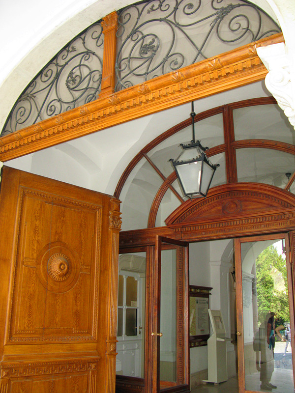 由于茜茜最爱紫罗兰色,所有居室都被漆成了淡雅的紫罗兰色,紫罗兰的墙壁,紫罗兰的窗帘,行宫里还保存了许多茜茜公主当年的用品以及许多珍贵的肖像油画, 由于室内不允许照相,(真的不喜欢这种小家子气)只能在大门及后花园拍了一些照片。