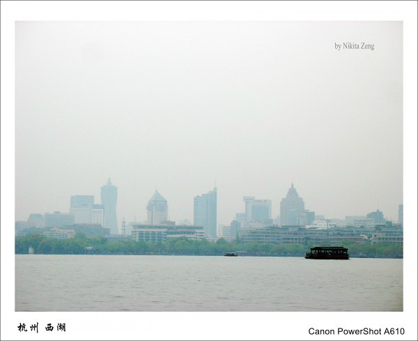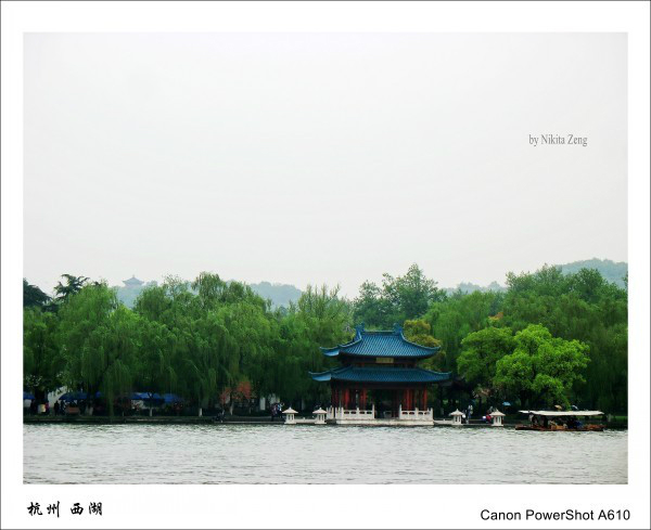 雨渐渐停了,雾气慢慢散去。湖左方的保俶塔露出了颀长的身形,右方城隍阁立在半山腰静默如画,小船拐了个弯,又是半响,在小瀛洲靠了岸。船夫问:要不要上去看看?我望着岛上游人,想着:若是夏季,田字形的小岛,岛中有湖,湖中有岛,荷塘半亩也值得一观,只是此时正值春末,顿感意兴阑珊。于是,拂开垂柳调转船头,迎向南边三座瓶形小石塔,著名的“三潭印月”就来源于此。算起来,这三塔在明代天启年间重建,已将近有四百年的历史了。(原创 bymailto:nikita_zeng@163.com(nikita_zeng@163.com) )