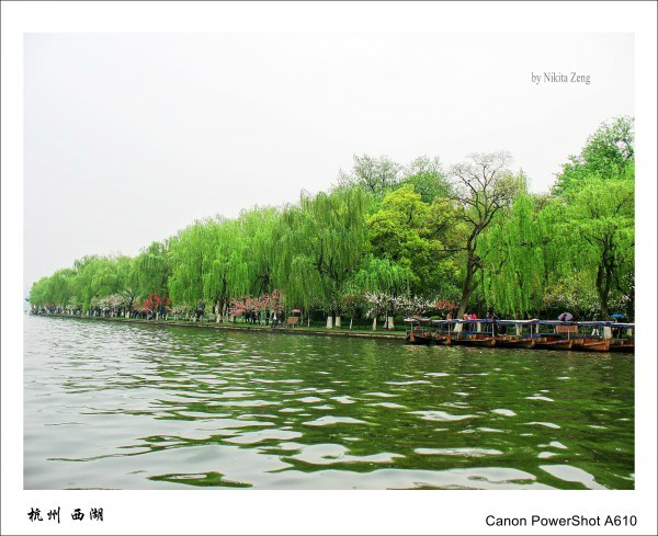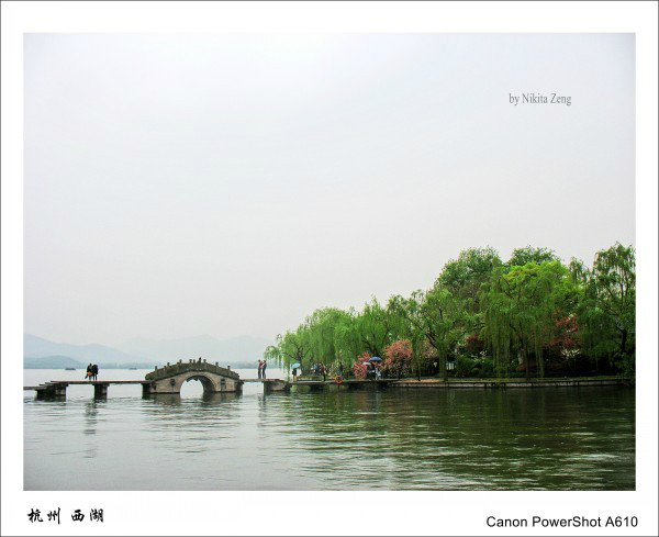 吃饱饭,顿觉浑身温暖起来。我们继续绕湖而行。恰逢杭城最美的时节,树翠花艳,水清山秀,满眼清爽。断桥已经不让自行车上去了,远远望去,人和人挤成一片,哪还有车子的地儿。我们走走停停,沿着湖滨向北而去,拐进了曲院风荷,莲池仍是一片残叶,水衫却是异常高大,水声淙淙,仿若闯进了原始森林。遥望对面的苏堤,姹紫嫣红,一片春光正好。(原创 bymailto:nikita_zeng@163.com(nikita_zeng@163.com) )
