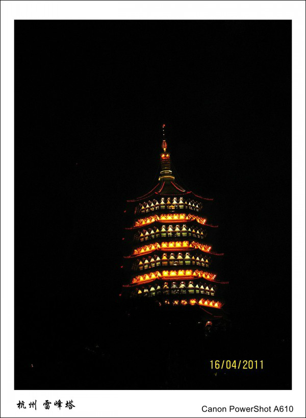 过了卧龙庄,天色开始渐渐暗下来,我们在拱桥上望着远处一片黑瓦白墙,知道那里便是茅家埠,可惜时间不够充裕了。我们想绕道西湖国宾馆(/poi/56499.html),却被警卫拦住了。只得继续前行,越过灯影飘渺的花港观鱼,人声鼎沸的雷峰塔,穿行在大街小巷,一路回到了酒店。