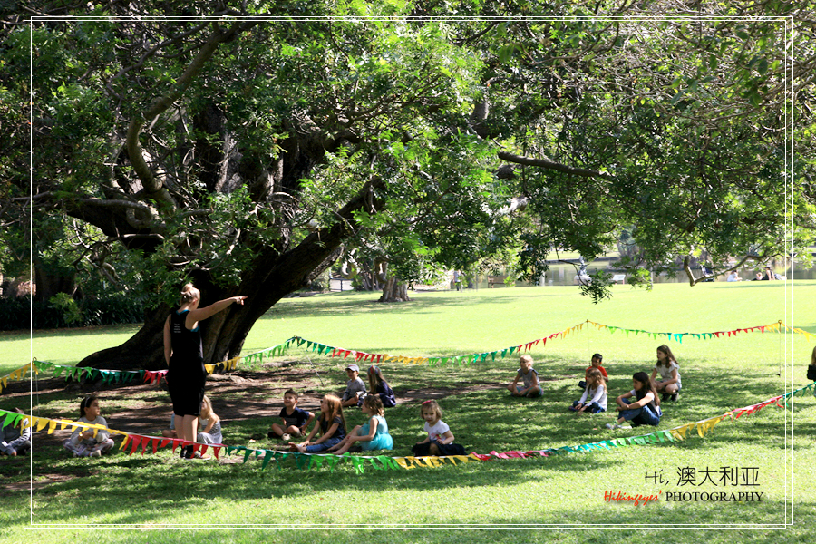 中午的悉尼歌剧院还是人山人海,而且光线太强,加上近拍这个建筑实在找不到什么好构图,拍照的兴致索然。只好提前往圆形码头Circular Quay出发。我们预定的下午2:30出发的悉尼海湾一小时精华游船。离出发还有一段时间,步行了一上午,也有些累了,也不想再走了。正好圆形码头的东边,卡德曼小屋的旁边有一大块草地,很多游客或是当地的上班族带着午餐在这休憩。阳光正好,海风轻拂,就这了。