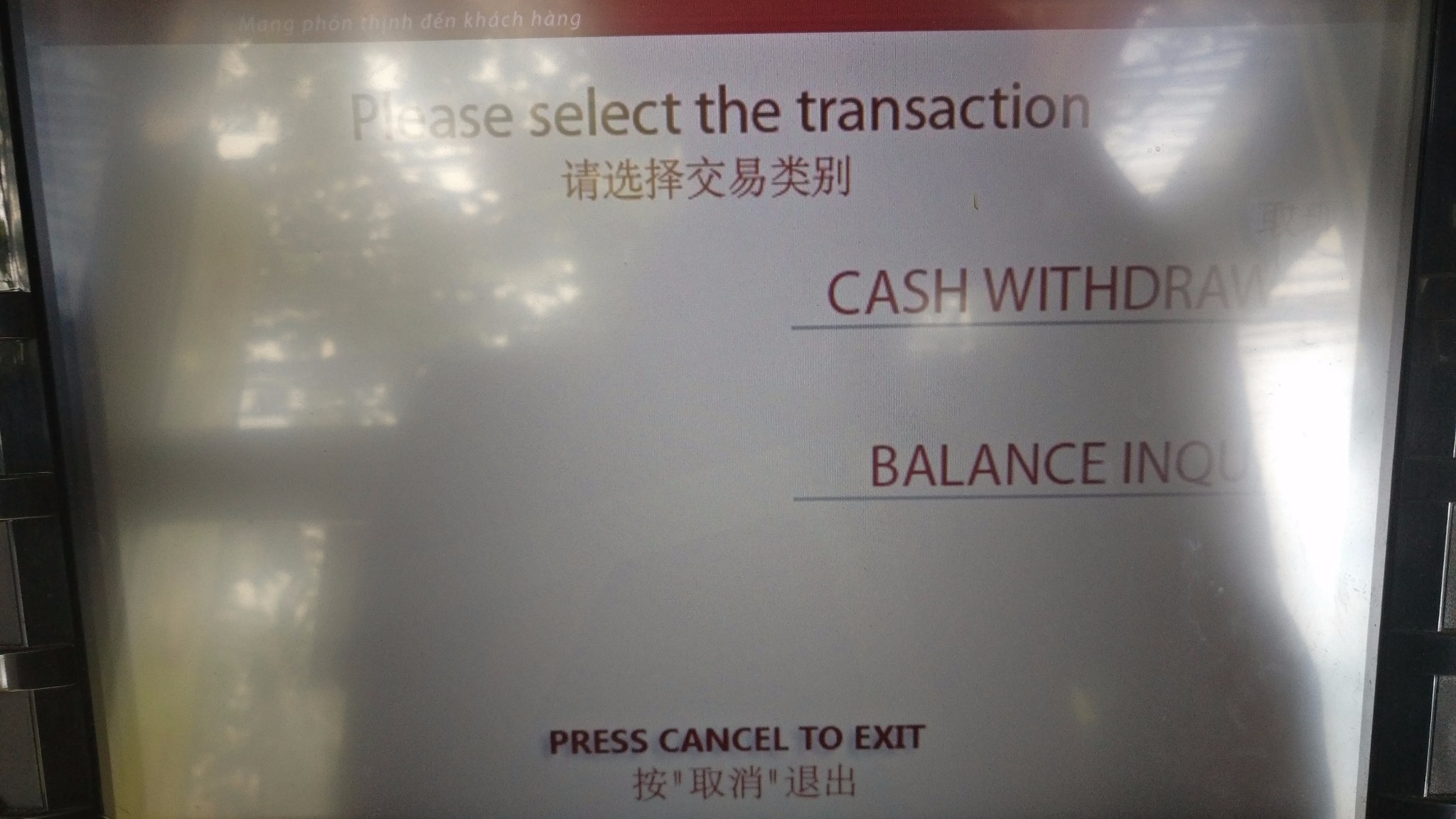 2越南只要带有银联标志的ATM机器都有两种操作语言:越南语或者是英语和中文