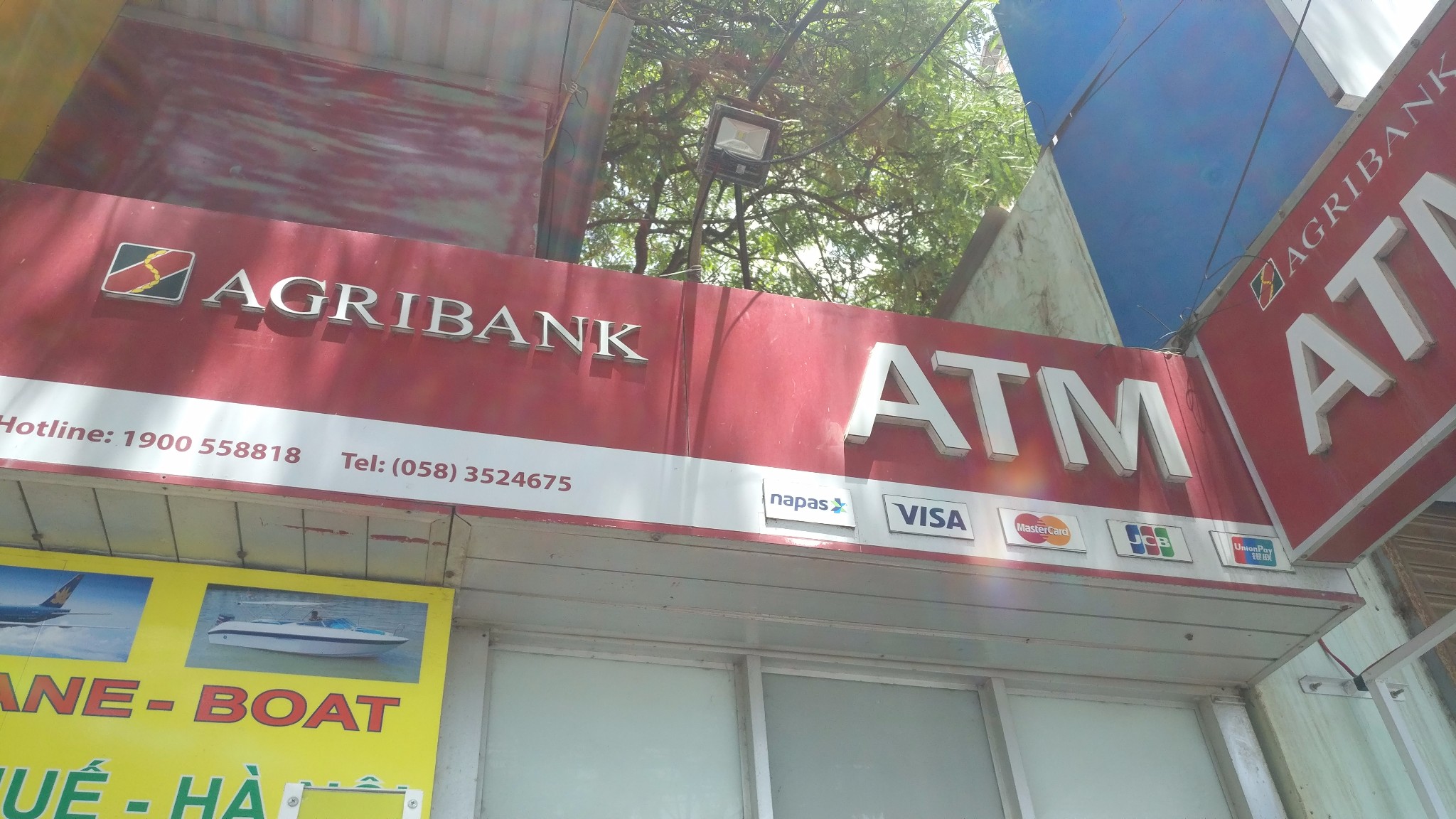 越南三四家银行ATM机器较多,也是比较大的三四家银行投资发展银行(蓝色标BIDV),农业和农村发展银行,俗称农行(红色agribank),外商银行vietcombank,工商银行vietinbank