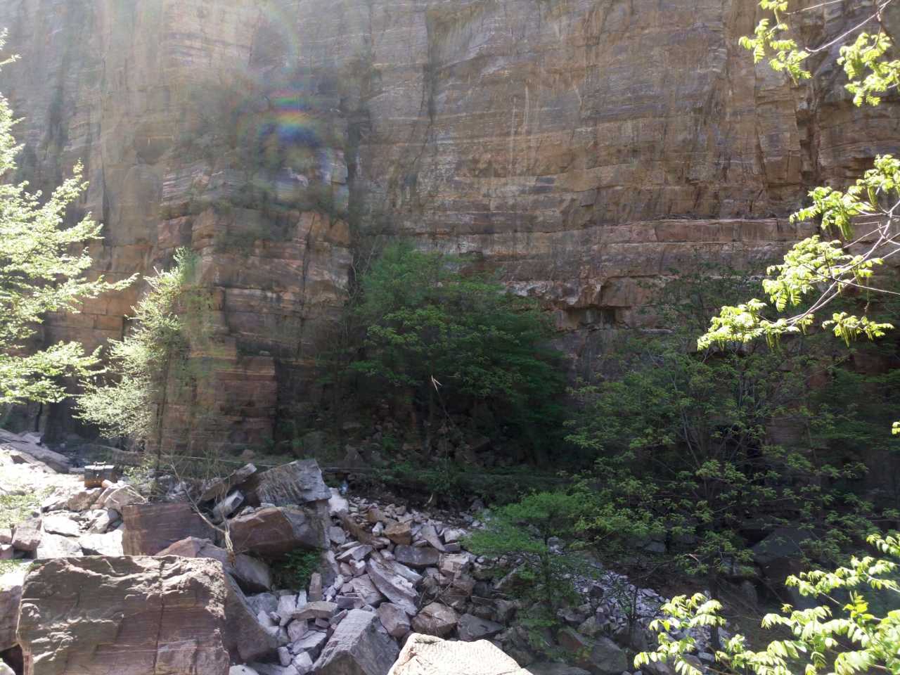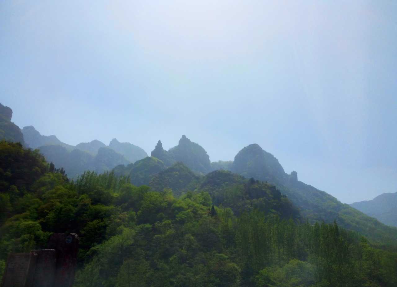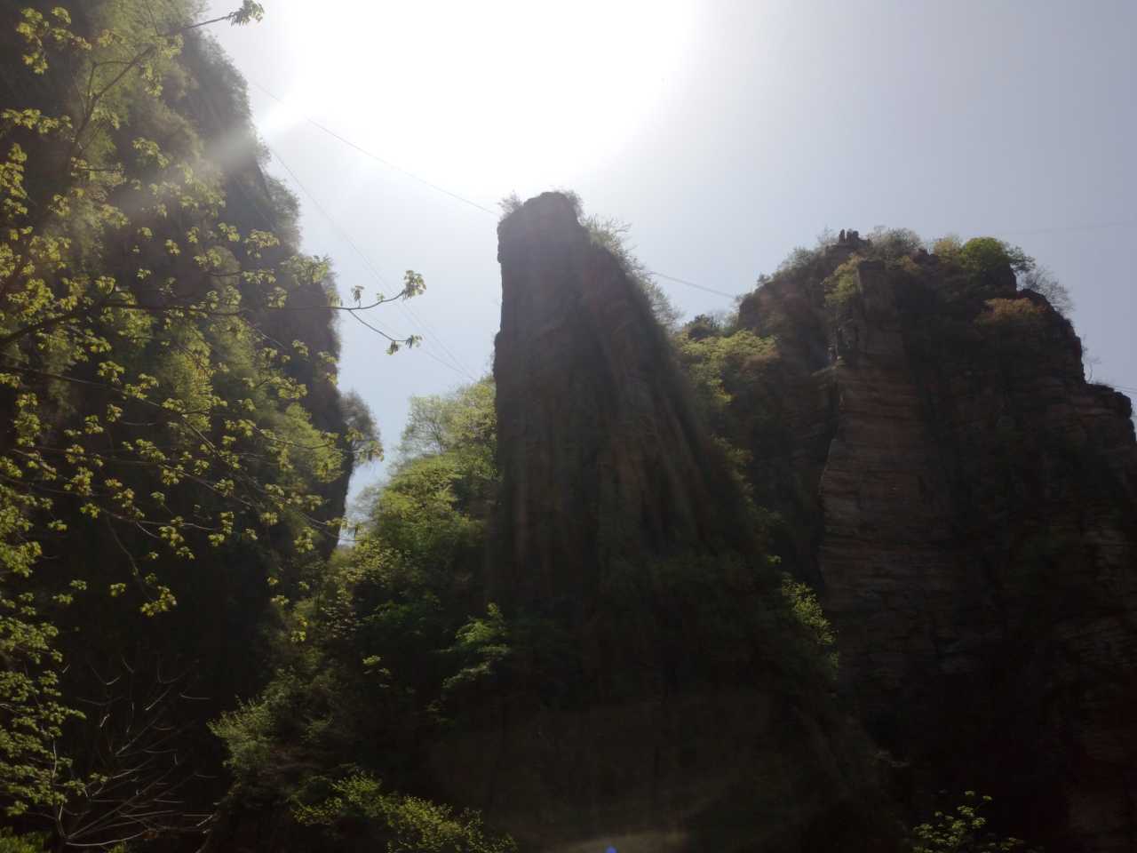 经过四个半小时左右到达万仙山,万仙山其实是一个非常大的景区,包含四大分景区,不过考虑到时间,我们选择的是黑龙潭和郭亮村,先去的黑龙潭,这里本来有收费的电瓶车可以上到山脚,结果那天有警察检查,不让电瓶车上山,我猜可能电瓶车是村里组织的,并没有经过审批。这里是太行山的一支,大多是古老的地层,沿途处处可见怪石嶙峋,不时可见很奇怪的石头,一个小时多点就走到了黑龙潭,老实说相对于南方的瀑布,这个这个瀑布有点细,不过胜在高度还不错,远看像红色岩石中间流淌的烟雾,流到潭底是碧绿色,倒也别有情趣。对于太行山脉,有这么一个水量的瀑布,应该也不是件容易的事。