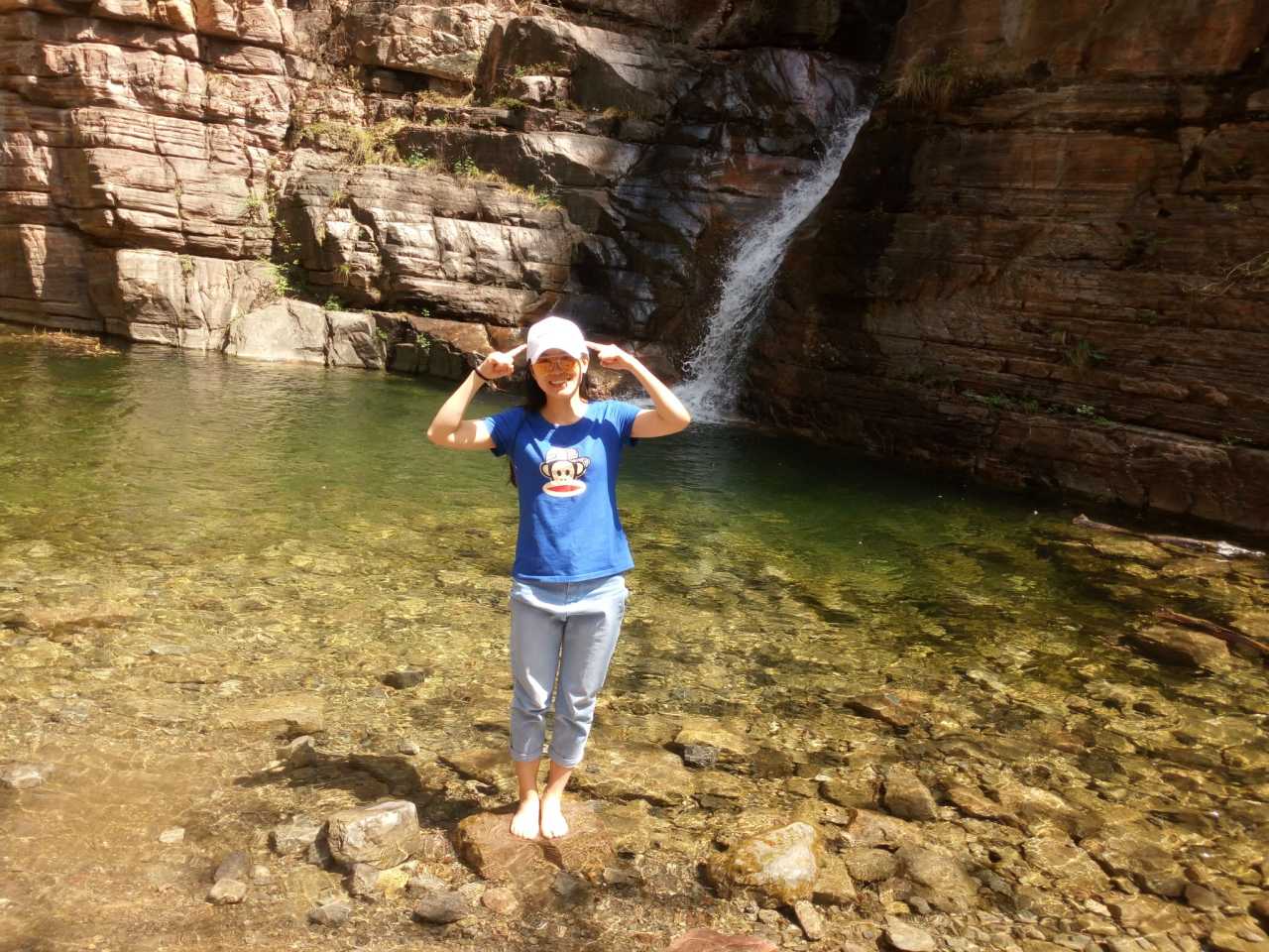 上去一段路,有个特别小的瀑布,水很浅,就想去水里踩踩,我试了下潭水还行,等下去后,瞬间像触了电的猫,在水中乱窜,妈妈呀,好冷,针扎似的,怪不得那么热没人玩水。