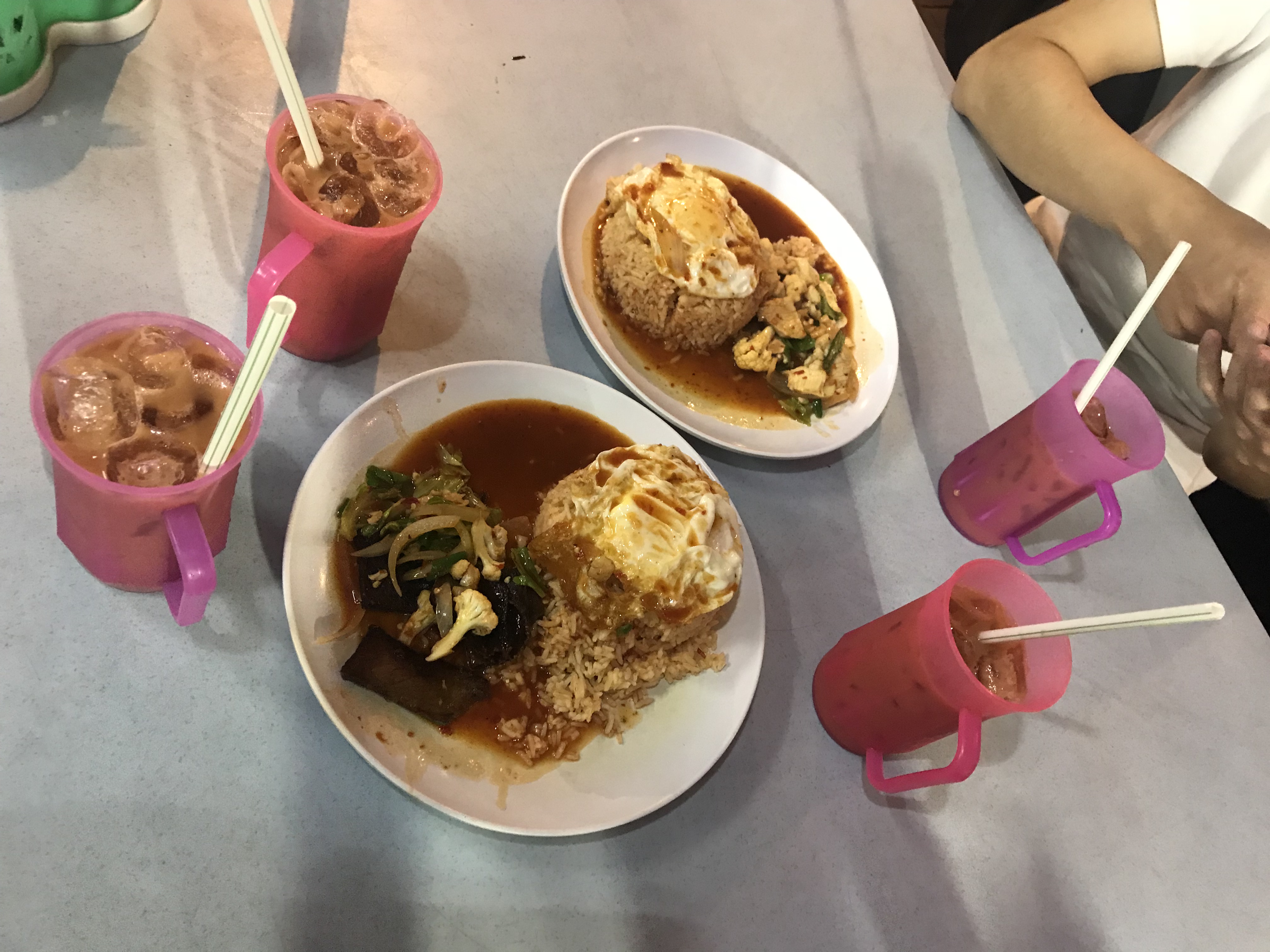 顺利的到达了酒店,我们住在武吉免登,2晚1间家庭房。办好入住大约11点半,放下东西洗个脸上个厕所,马上去来时看到夜市摊…… 就是那么巧,看到的是阿罗街,也有些小幸运,都快12点了,整条街依旧热闹得不得了,全是人全是人。在来马来之前,同行的GING还说这么晚到了酒店就不出去吃东西了呢,要是真的不出来就后悔了吧~ 哈哈。因为元宵,时不时都放鞭炮,还有舞狮、表演等等,大音响里播着:“三分天注定,七分靠打拼,爱拼才会赢……”,完完全全感觉像是在中国,到处说着普通话和广东话、闽南语等。至于吃的,看着哪家合眼缘进去吃就好了,不用刻意去追求或者苦苦搜寻哪家最棒,因为我一圈看下来,没有说特别吸引的,也没有特别抗拒的,随缘有惊喜,最终在街口的小摊看见都像是本地人入座并且每个人桌上都点了同一碟饭,我们便坐下来,就点和别人都一样的,只分chicken 和 meat,各点了一份,到大马当然少不了拉茶,我打算这几天要疯狂地喝拉茶,就这样在大马的第一餐开始啦。