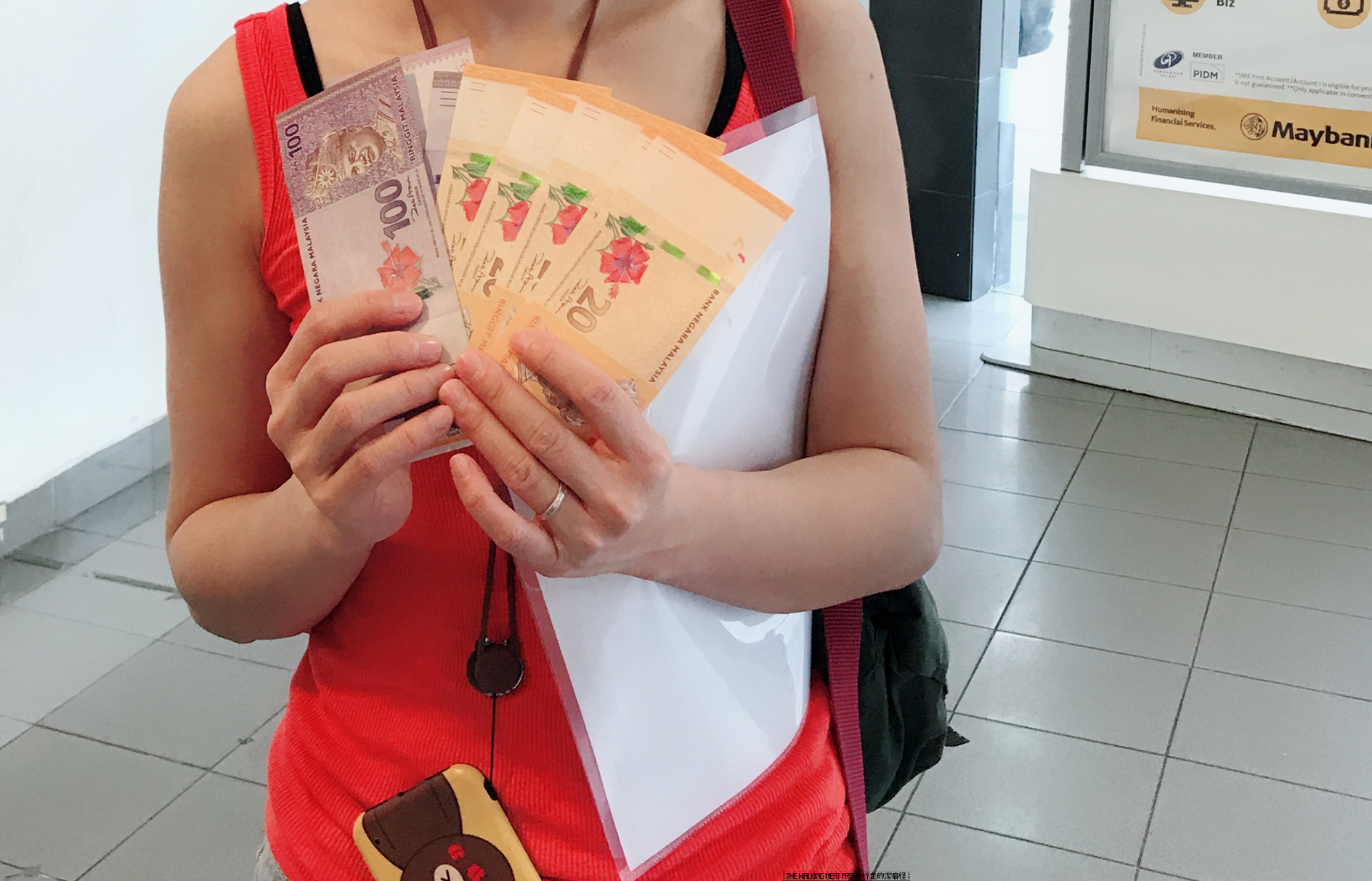 ※关于ATM取钱的需要注意的。建议用MayBank或CIMB带有银联标识的ATM,目前能确定的是这两家银行免马方手续费(因为手续费分两边,一边是卡的归属行收不收境外取款手续费,另一边是取款的ATM所属银行收不收手续费,两边均不收,便是所谓的全免手续费了,但每次取款我对比了当天网上的汇率和当天取款银行扣掉的人民币,总是会多扣了几块钱,难道是表面上说是免手续费,偷偷在汇率上吃一些水吗?不过我们取的都不是大笔金额,所以也无所谓这一点差别啦)。但值得一提的是,我们刚下飞机匆匆忙忙在机场ATM取的银行是RHB,因为取得很急没注意看有没有什么提示,后来回看银行明细感觉像是收了手续费。
