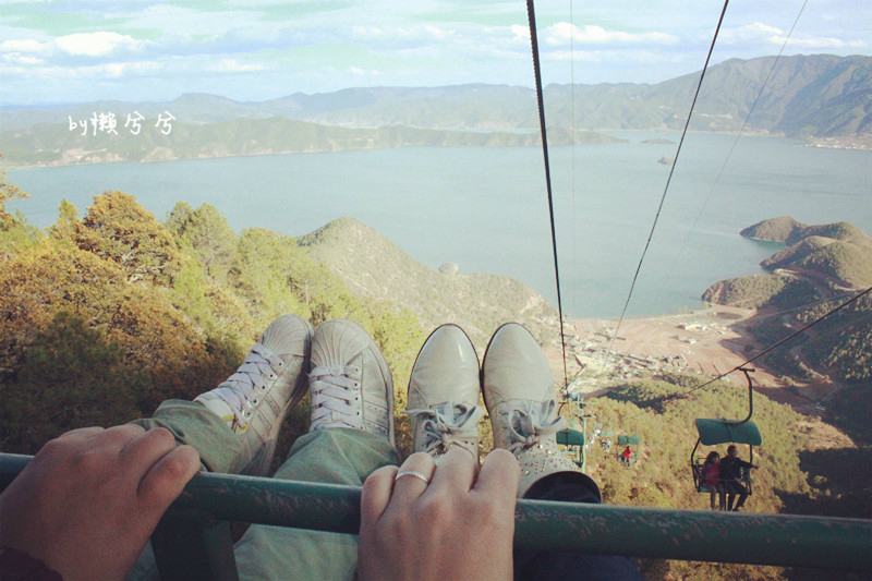 格姆女神山真的很值得一去,爬到山顶,可以看到整个泸沽湖 的全景,美景尽收眼下,而且很值得一提的是,坐索道 真的很划算,90元,上山下山,这个索道是我坐过时间最长,风景最好的,到山顶,还有女神洞,山上猴子很多,脾气很坏,可能因为常年游客多,猴子们竟然都不怕人,跟峨眉山 的猴子有点一比了。