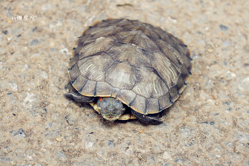 上岸了之后竟然看见有一只 乌龟慢慢悠悠的 爬着。 也不管我们看它