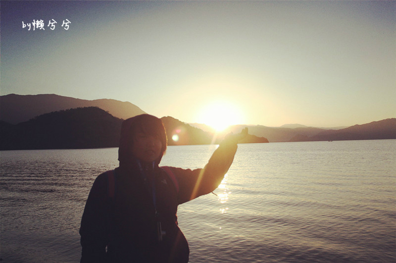 我们还偷偷的把客栈的毛毯给背出去了,为了防止船上冻着,不知道是不是因为穿太多,还是湖上也不是那么冷,我竟然没感觉到有刺骨的寒,只是等待日出的时间是漫长的.....
